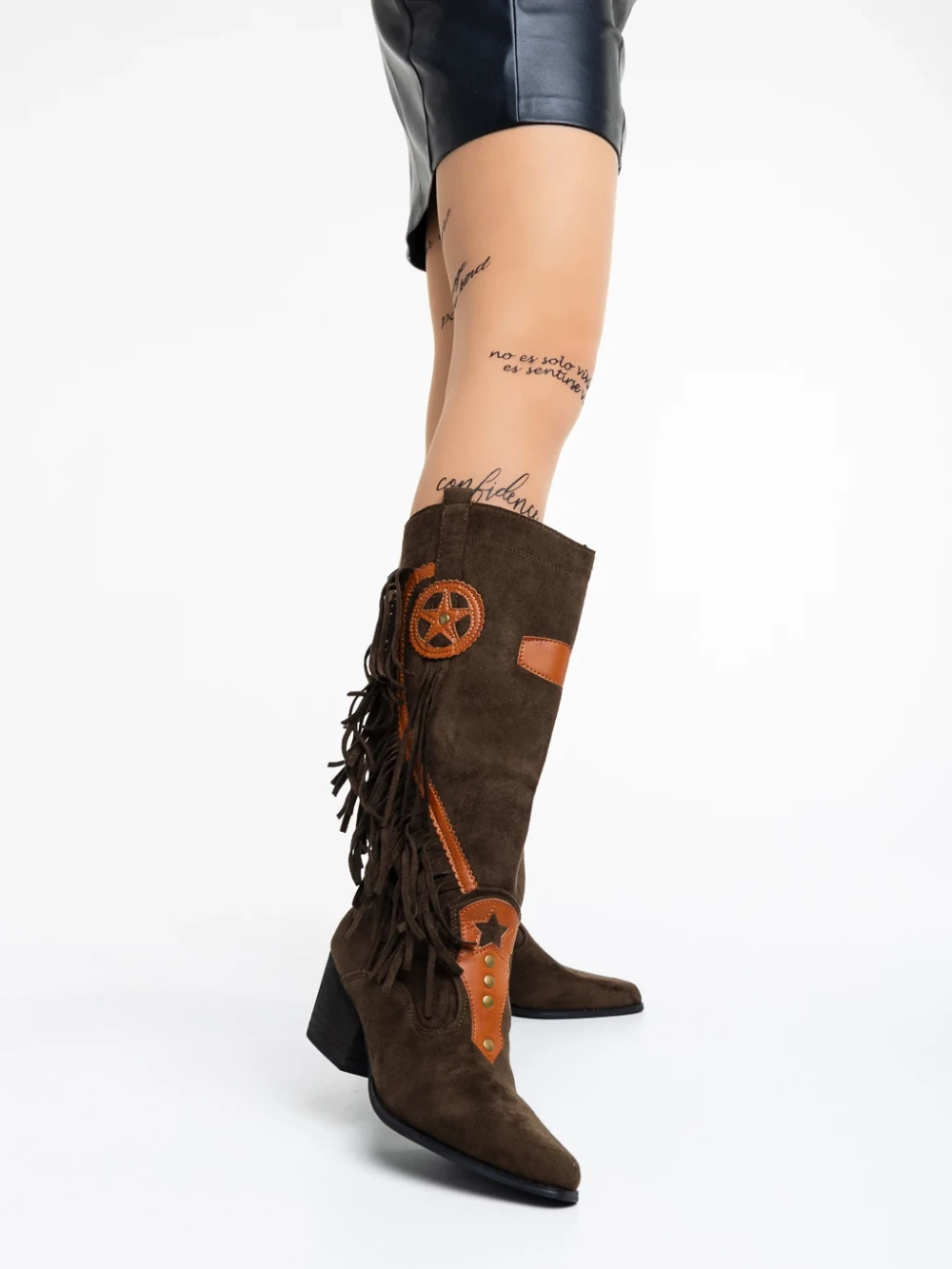 Дамски чизми зелени от текстилен материал Kally Информация за продукта