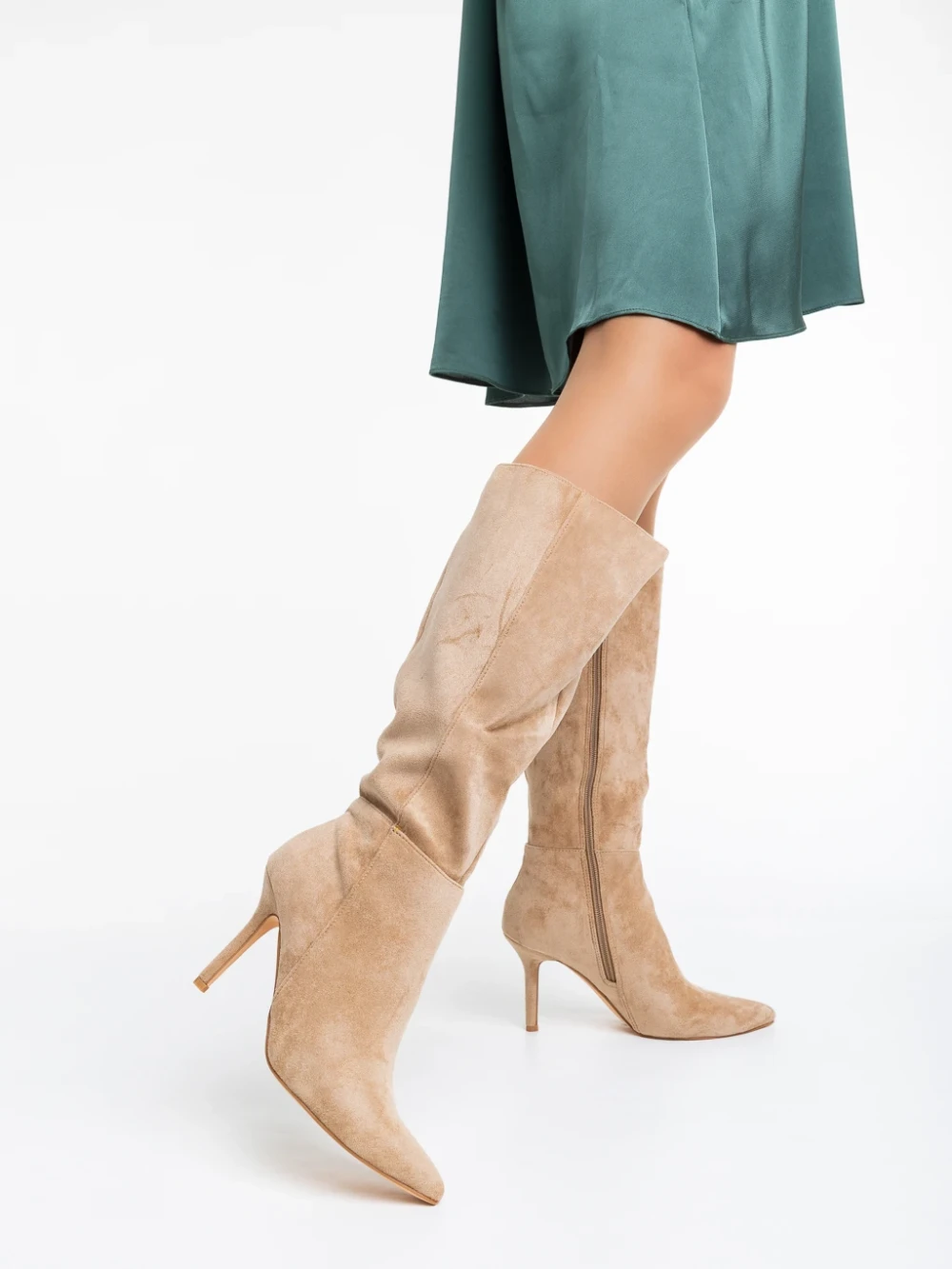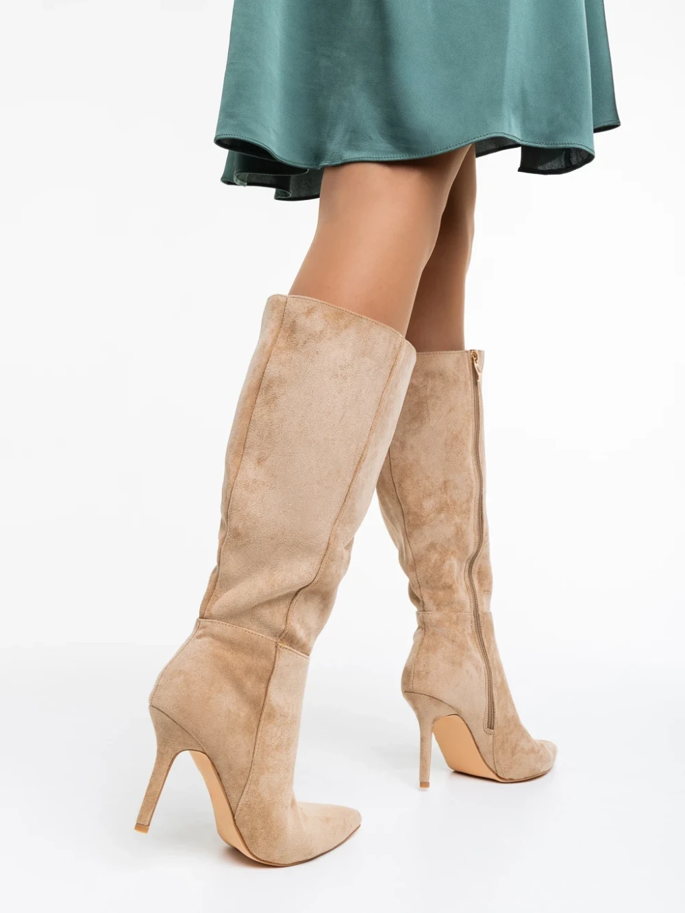 Дамски дълги ботуши на токчета 3XKK35 Бежово | Mei