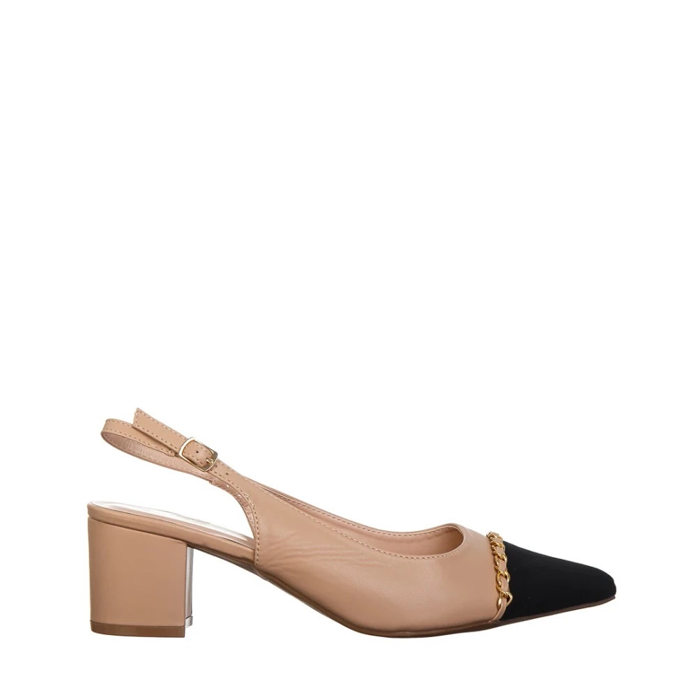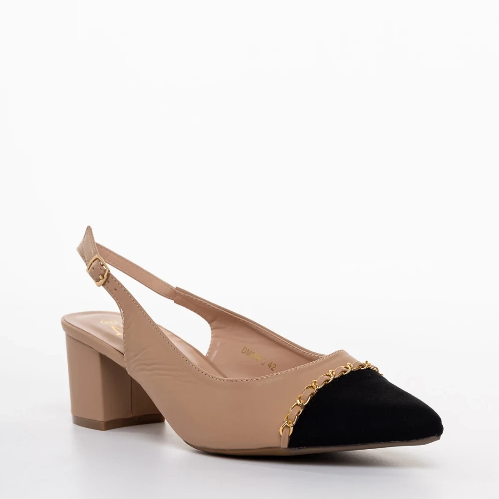 Дамски обувки с ток бежови с черно от еко кожа Felicity