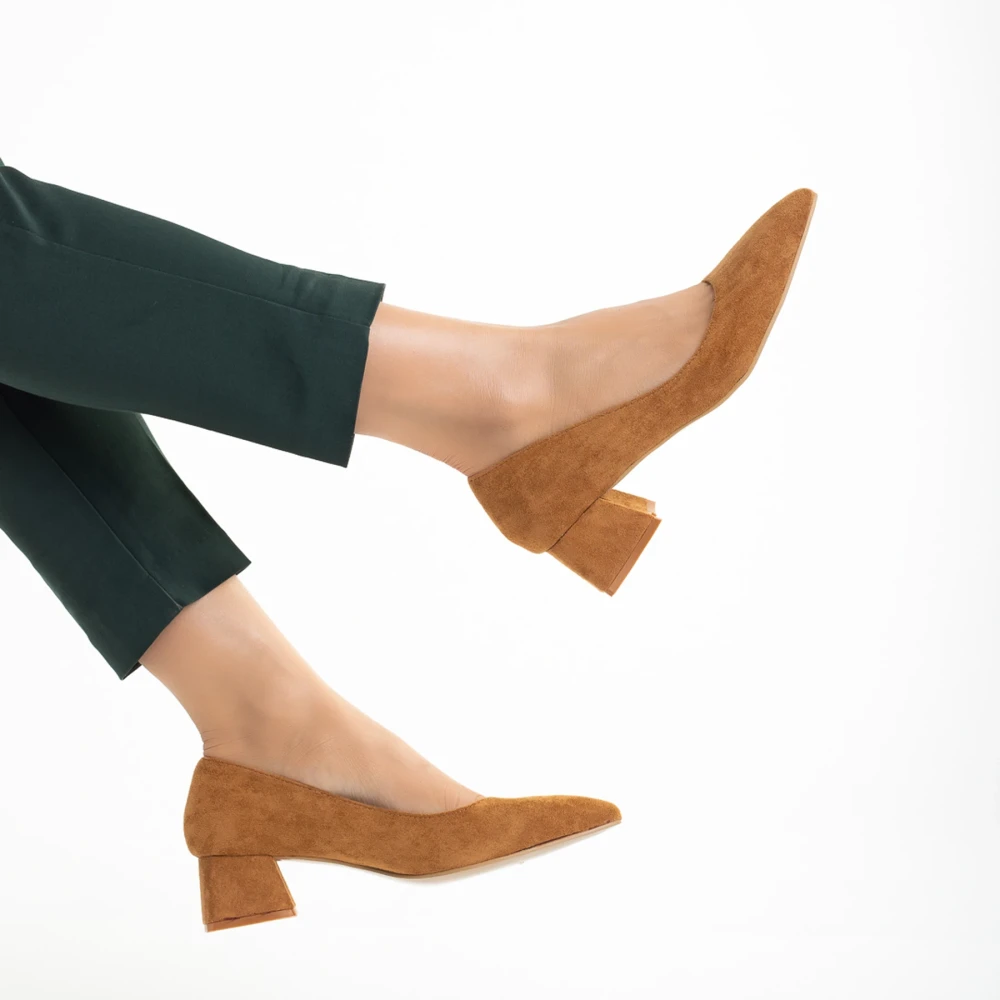 Дамски обувки с ток златисти от екологична кожа Minetta