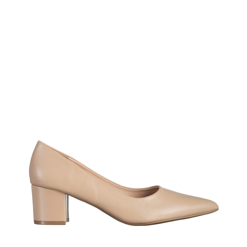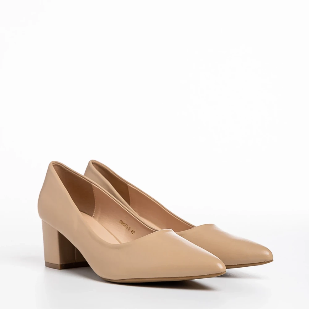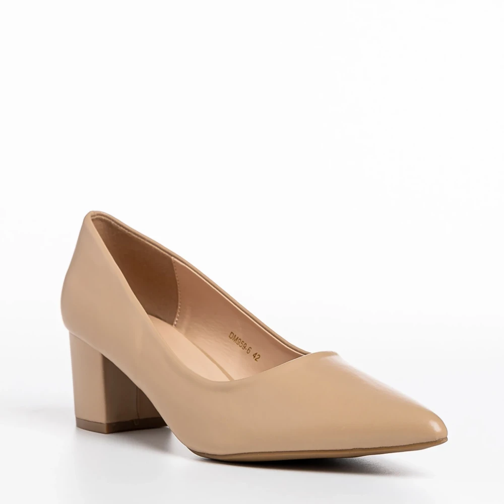 Дамски обувки с ток бежови от екологична лачена кожа Ludena