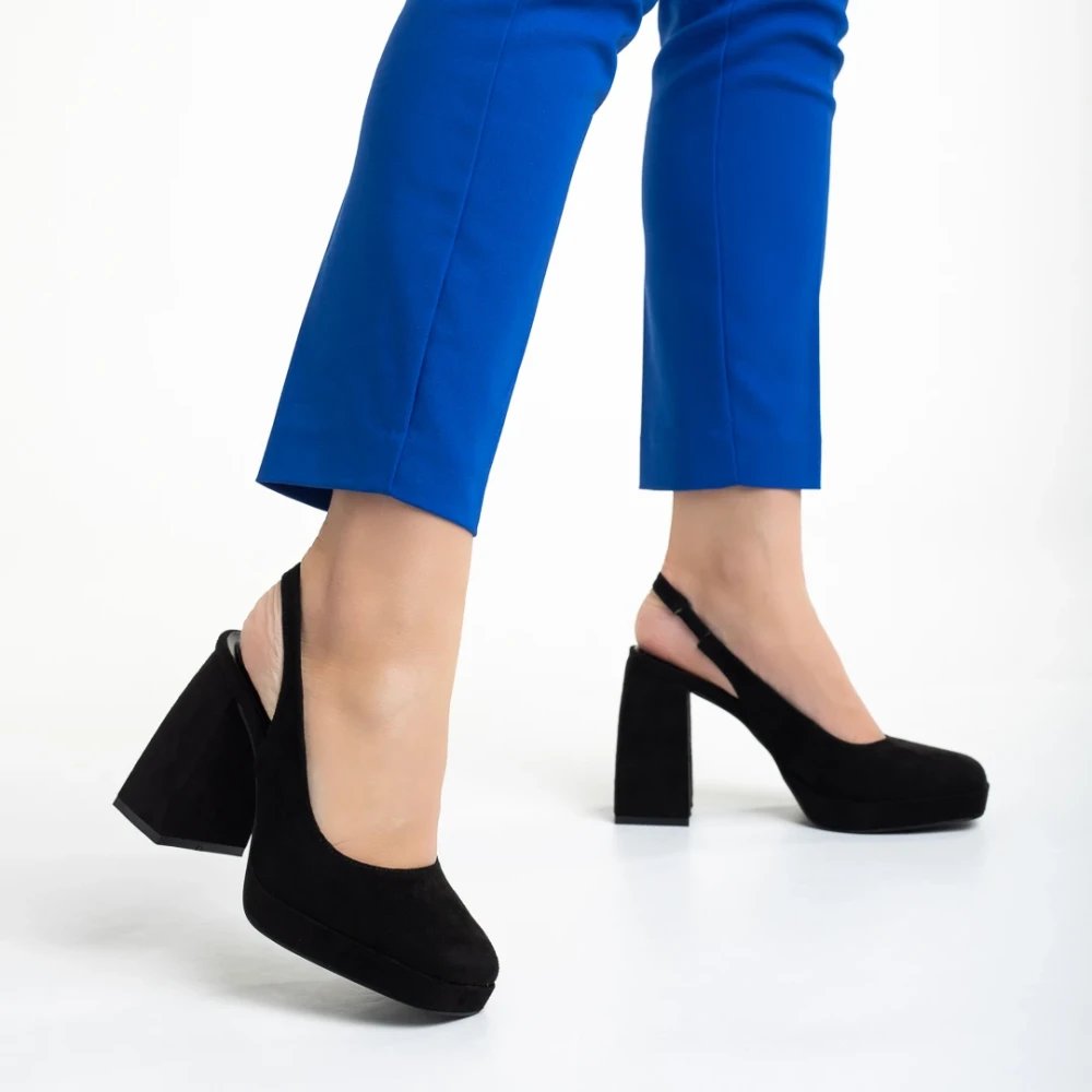Дамски обувки черни от текстилен материал с ток Dalaina Информация за продукта