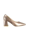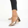 Дамски обувки с ток бежови от екологична лачена кожа Ludena