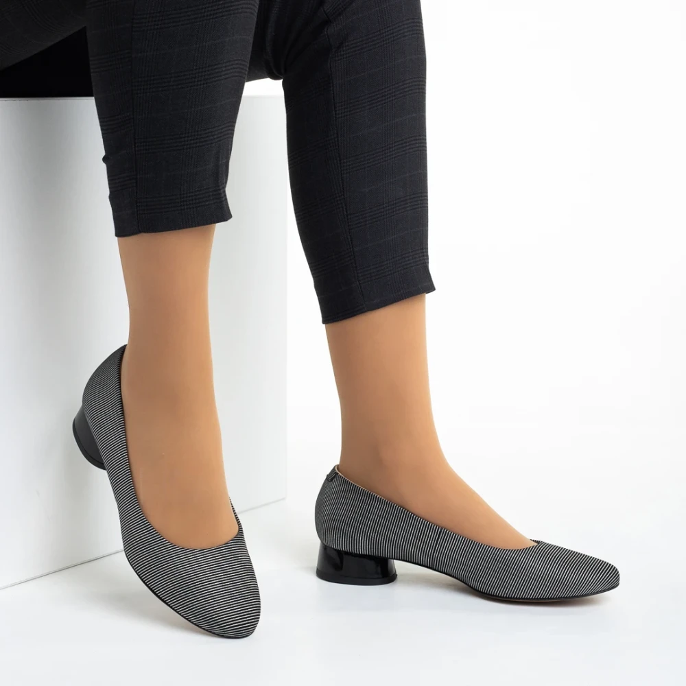 Дамски обувки черни с ток от еко кожа Parvina