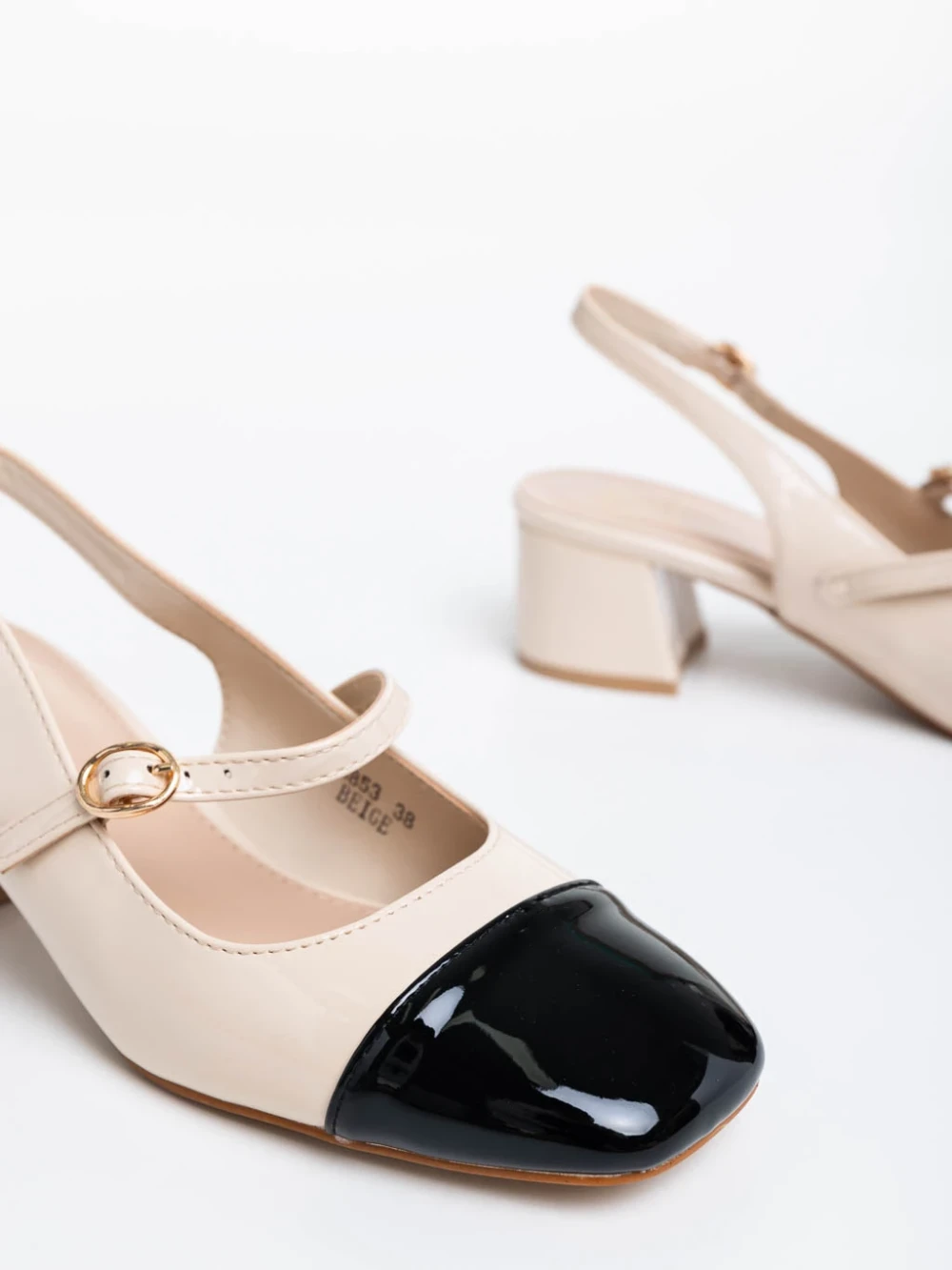 Обувки с дебел ток 2YXD30 Светло бежово Mei