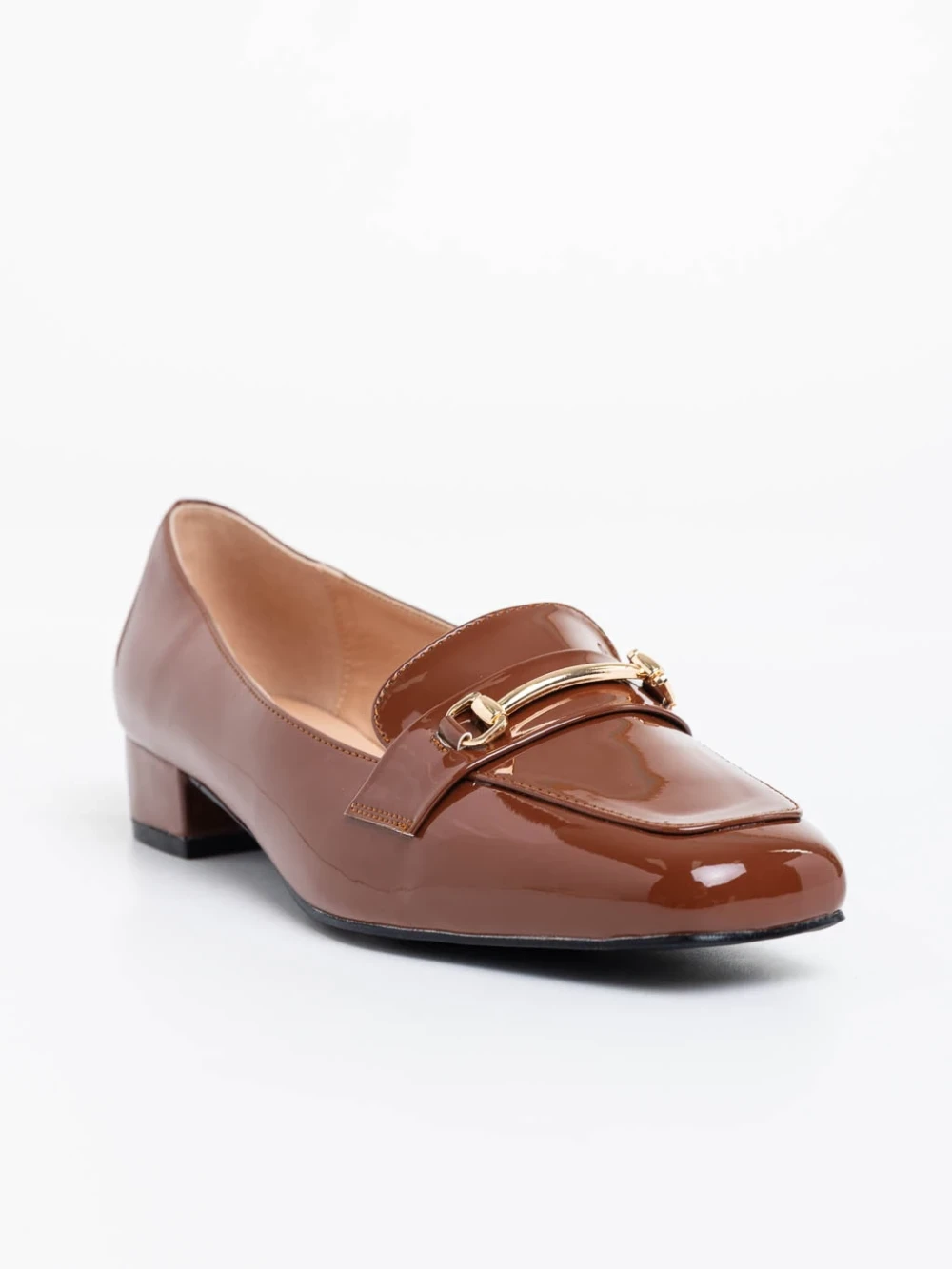 Дамски обувки с ток бежови от лакирана екологична кожа Ashlea