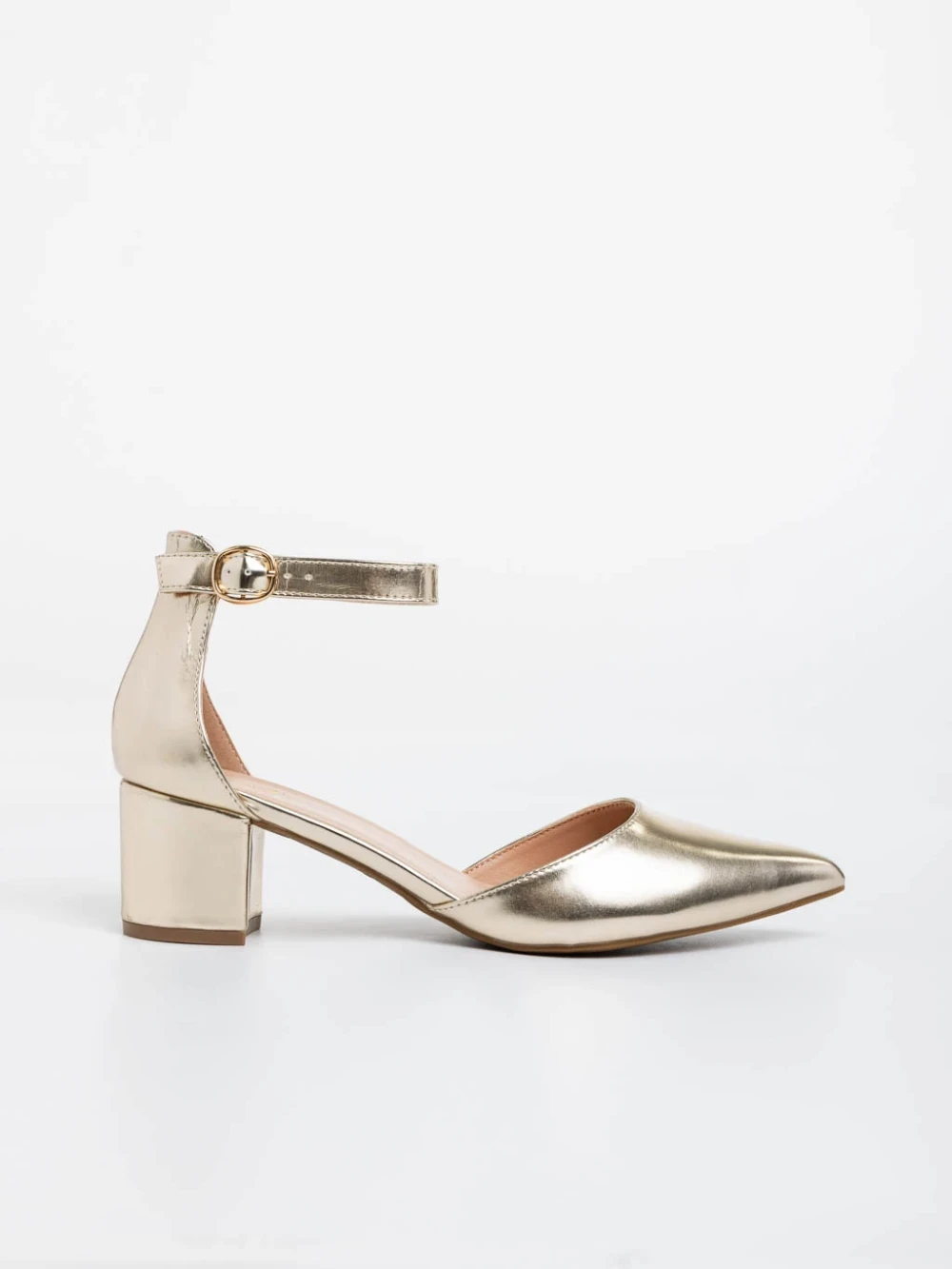 Дамски  обувки с ток златисти от екологична кожа Armelle