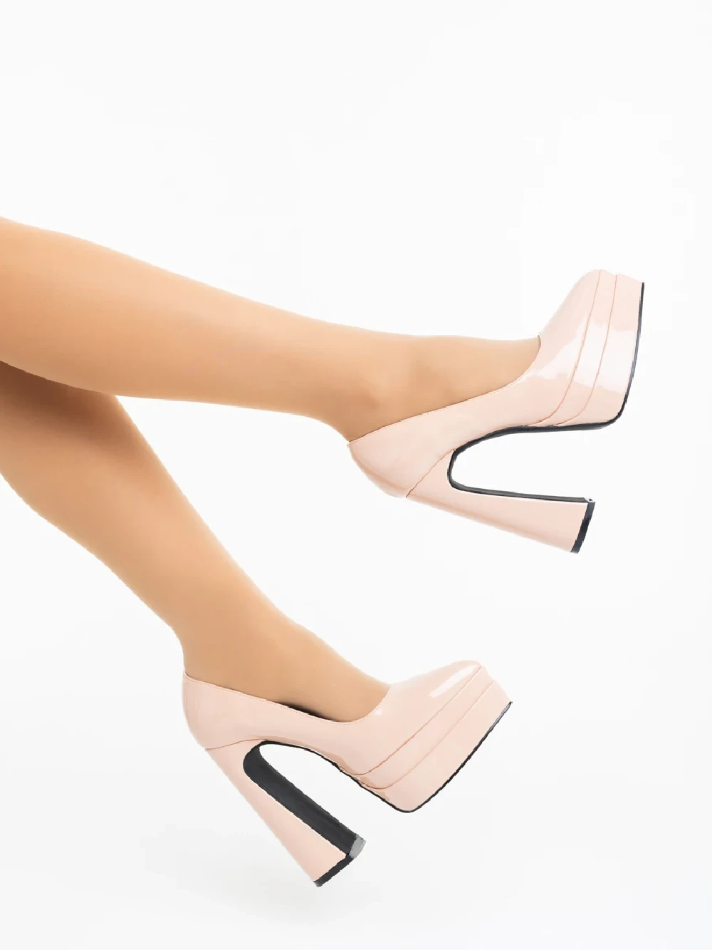 Дамски обувки бежови от лачена еко кожа с ток Ilonka