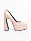 Дамски обувки с ток бежови от екологична лачена кожа Dazani
