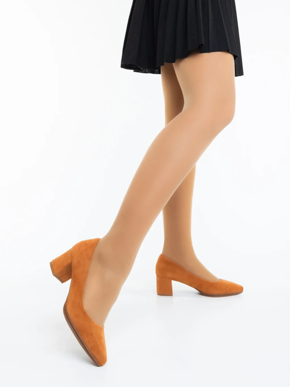 Дамски обувки с ток камел от текстилен материал Naraza Информация за продукта