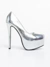 Дамски обувки сребристи с ток от еко кожа лачена Evanthia