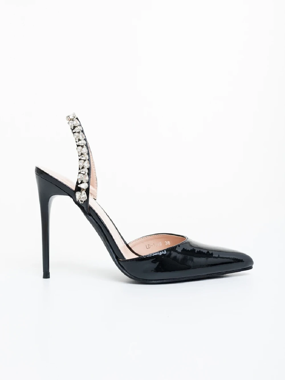 Дамски обувки с ток черни от екологична лачена кожа Coralina