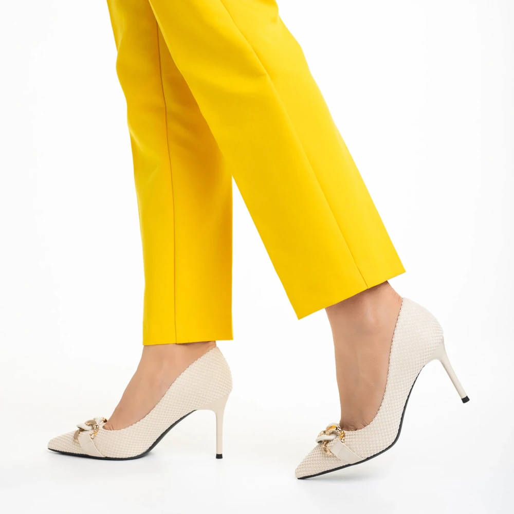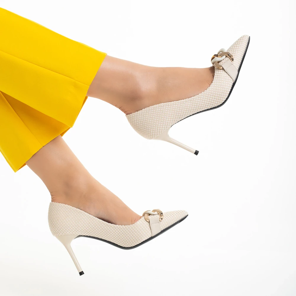 Дамски обувки с ток бежови от текстилен материал Tiphanie