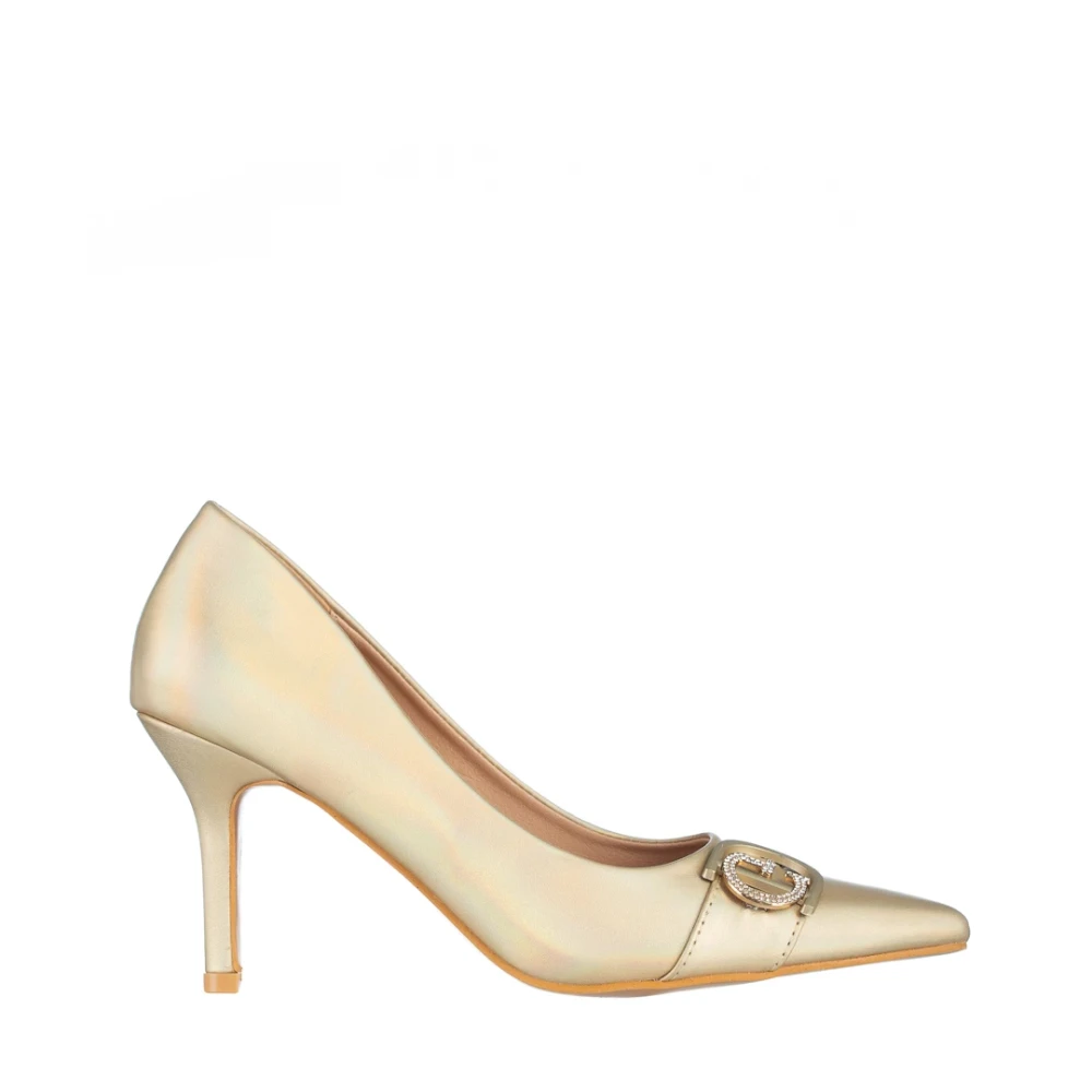Дамски обувки  златисти  с ток от еко кожа Yuka