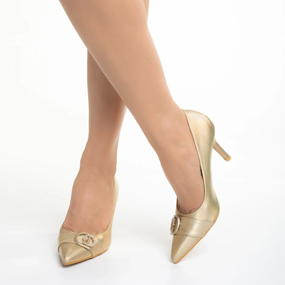 Дамски обувки златисти с ток от еко кожа Yuka Информация за продукта