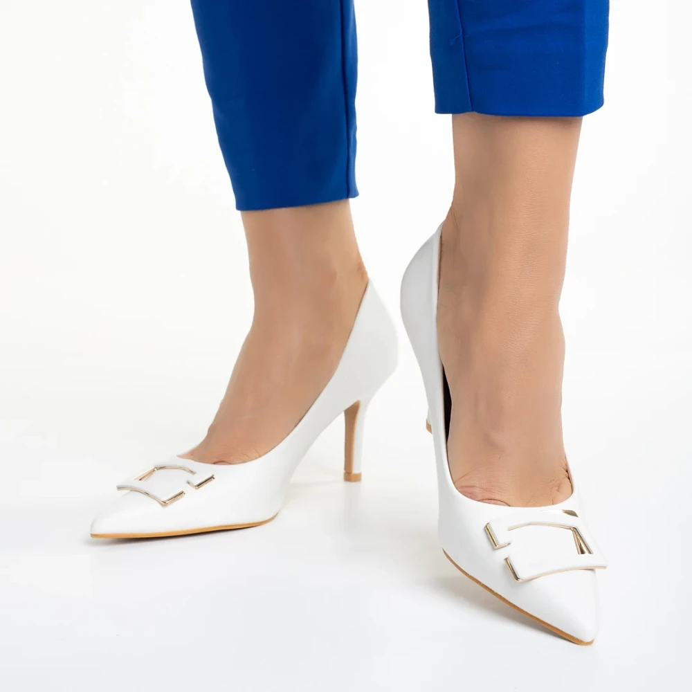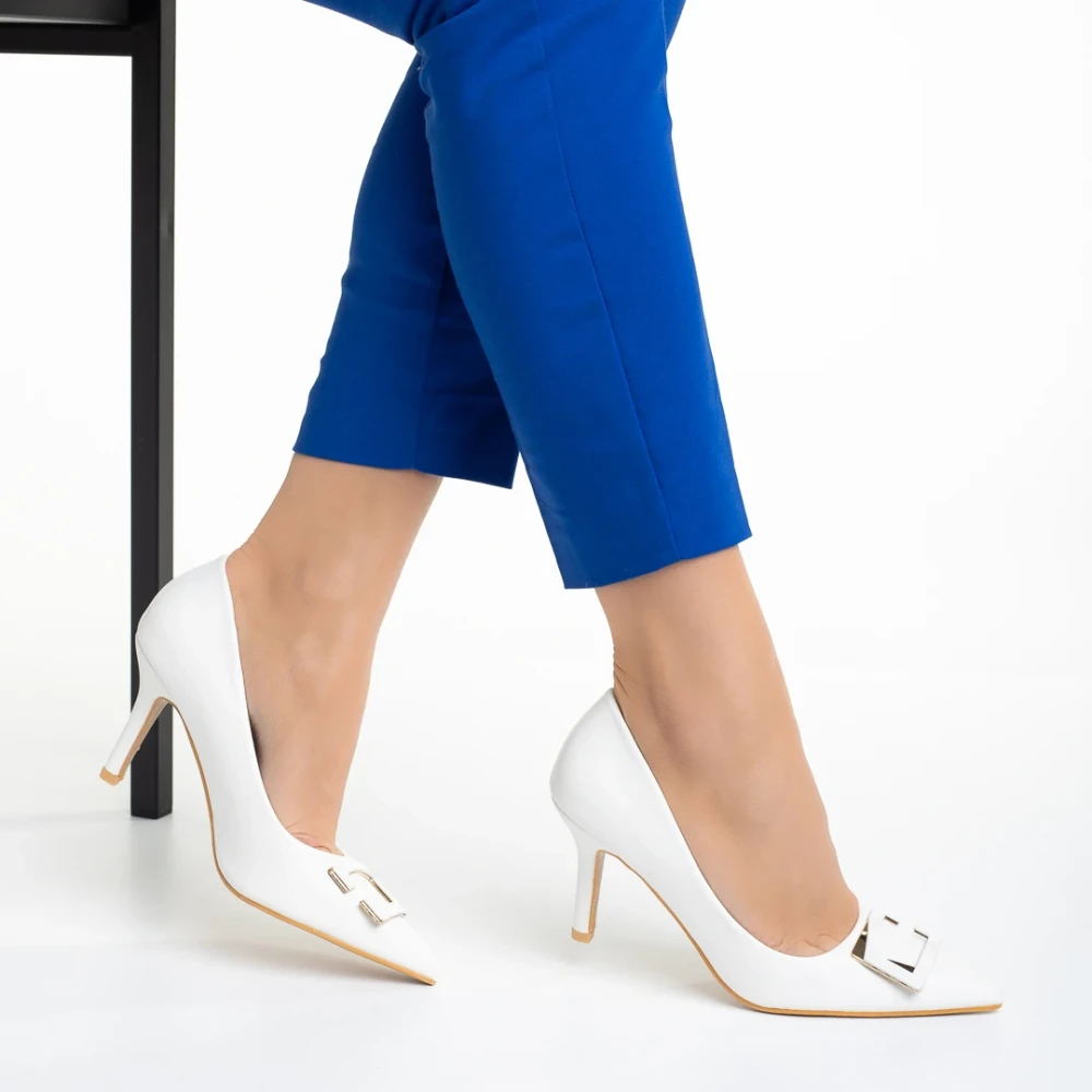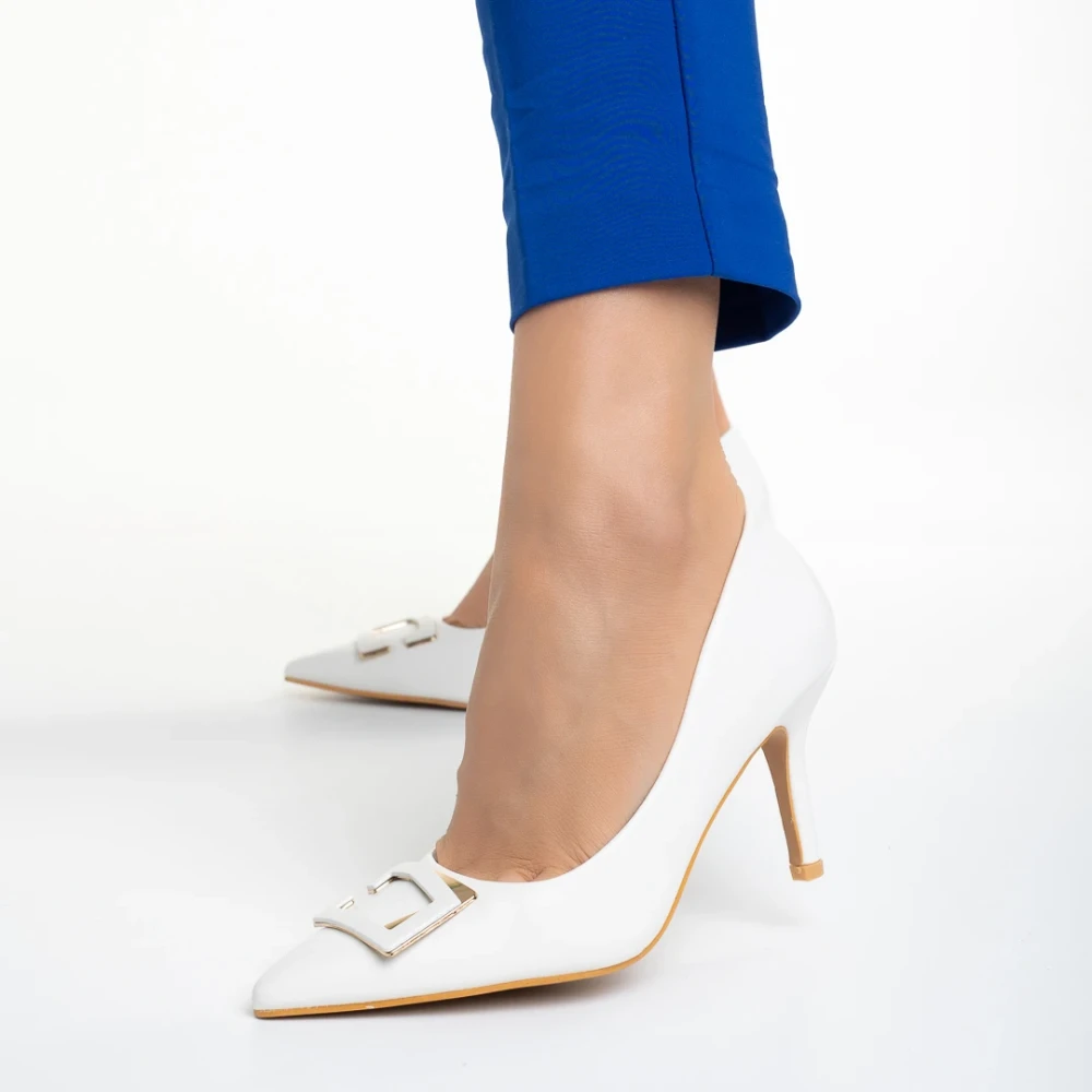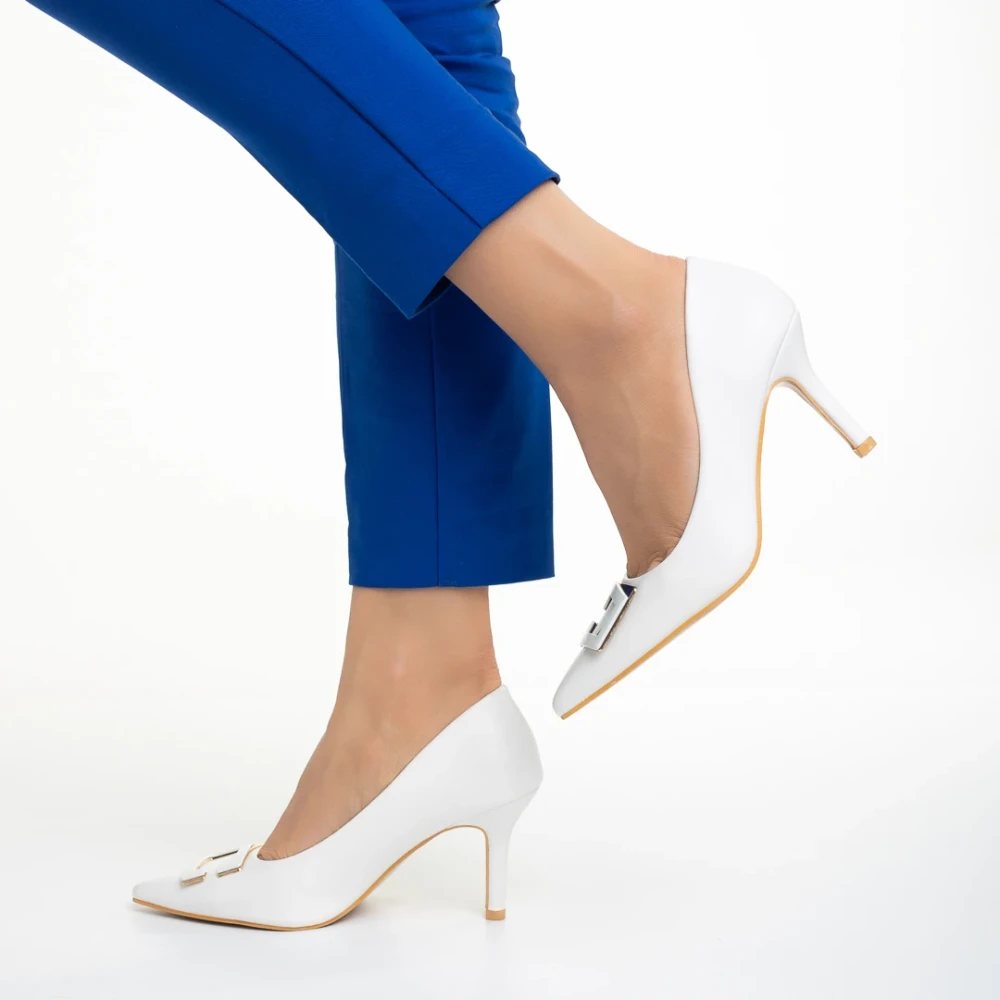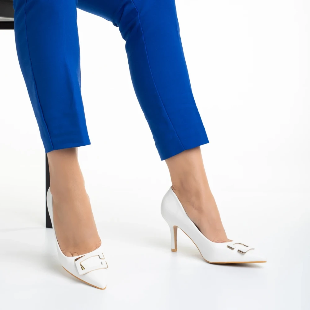 Дамски обувки бели с ток от еко кожа Katla