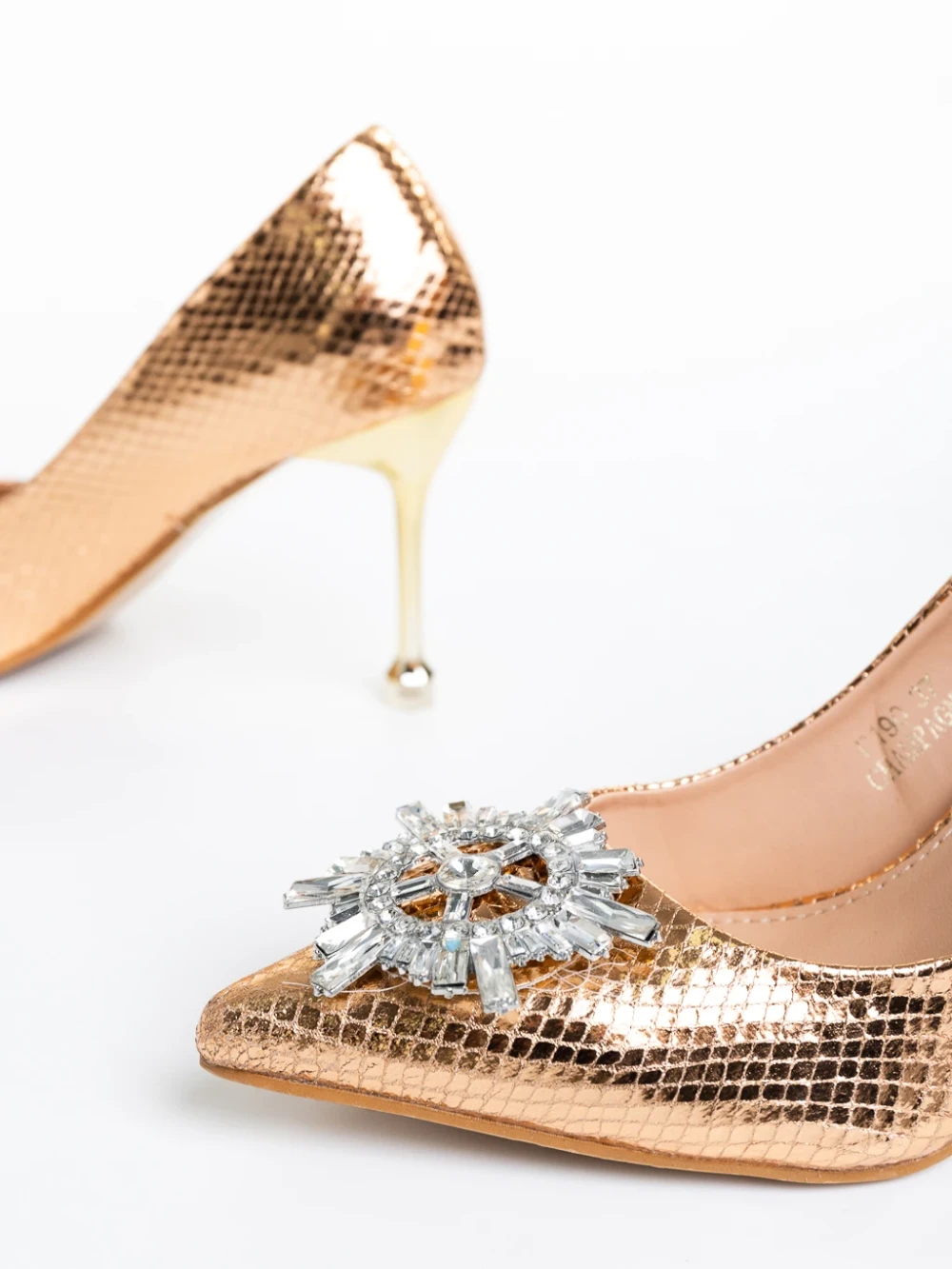 Дамски обувки  бронзови  с ток  от  еко кожа  Nerina