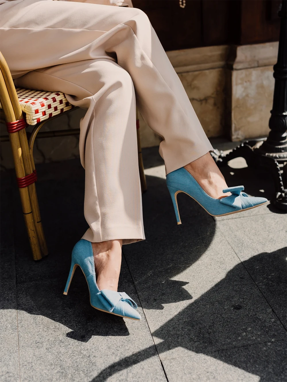 Дамски обувки сини с ток от текстилен материал Senovia Информация за продукта