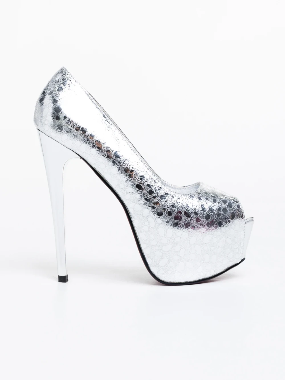 Дамски обувки с ток сребристи от текстилен материал Armara
