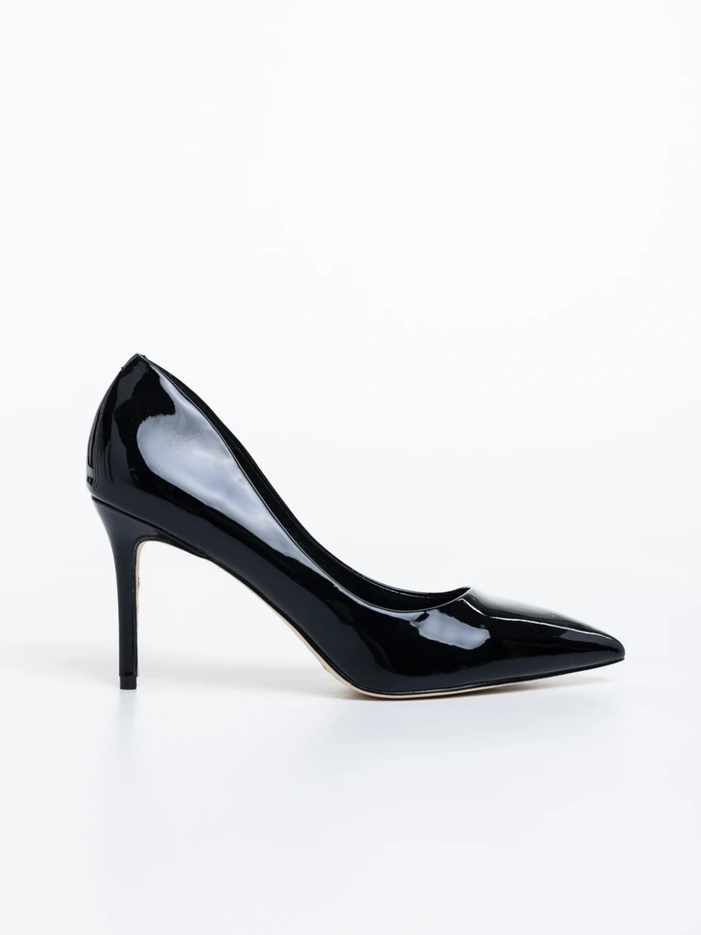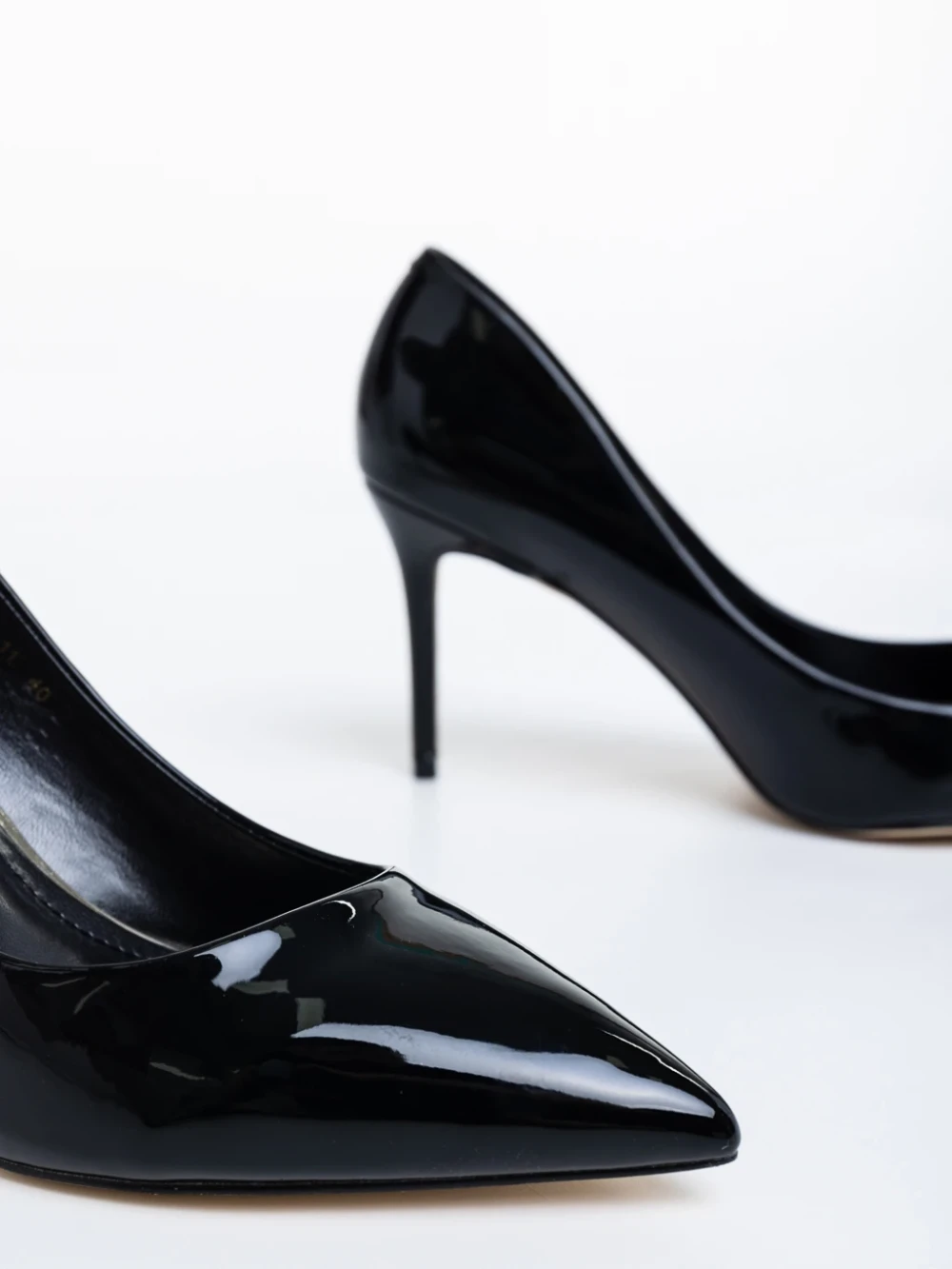 Дамски обувки черни с ток от еко кожа лачена Sanchia
