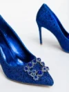 Дамски обувки с ток черни от екологична лачена кожа Rhoda