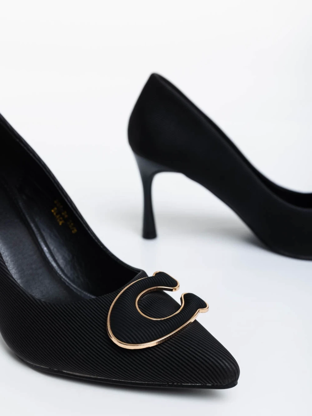 Дамски обувки с ток черни от текстилен материалTacey Информация за продукта