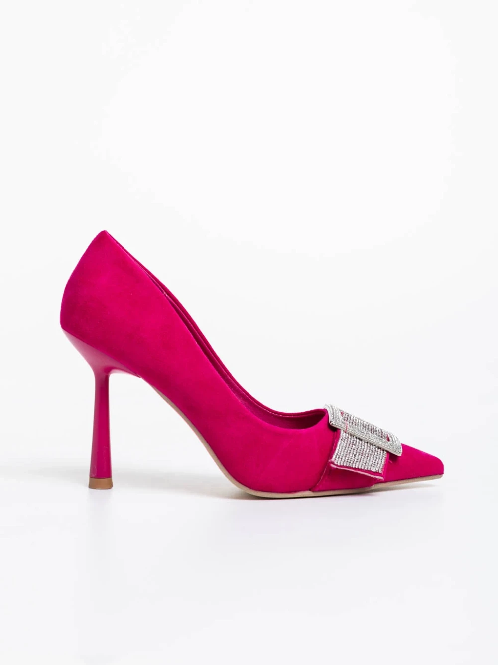 Дамски обувки  фуксия с ток  от текстилен  материал Tiphanie