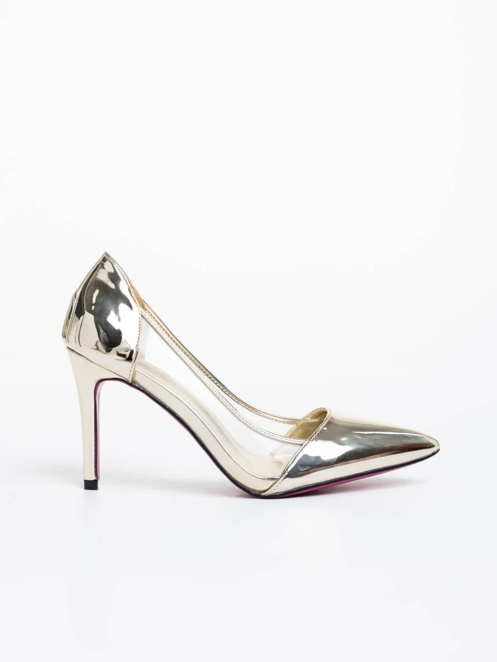Дамски  обувки златисти от лачена екологична кожа Ambar