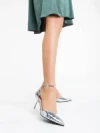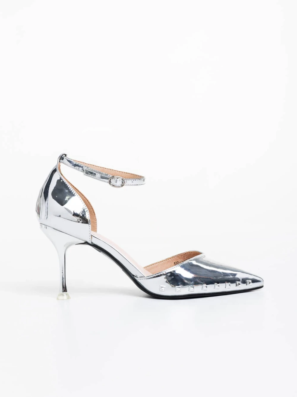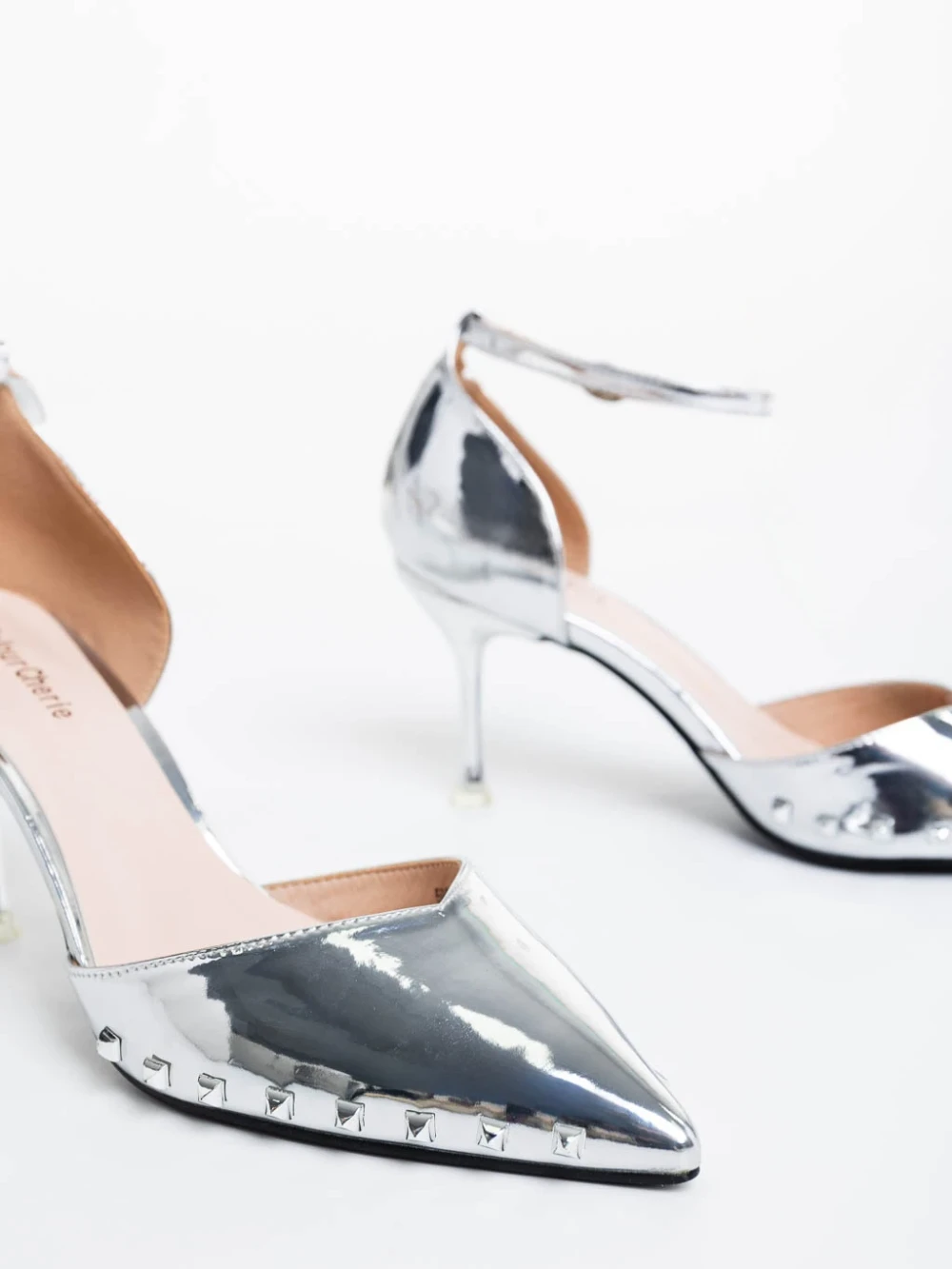 Дамски обувки с ток сребристи от екологична кожа Shanza
