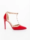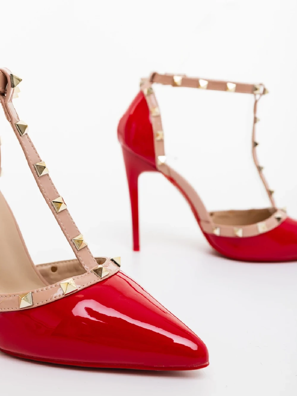 Дамски обувки с ток червени от екологична лачена кожа Namora