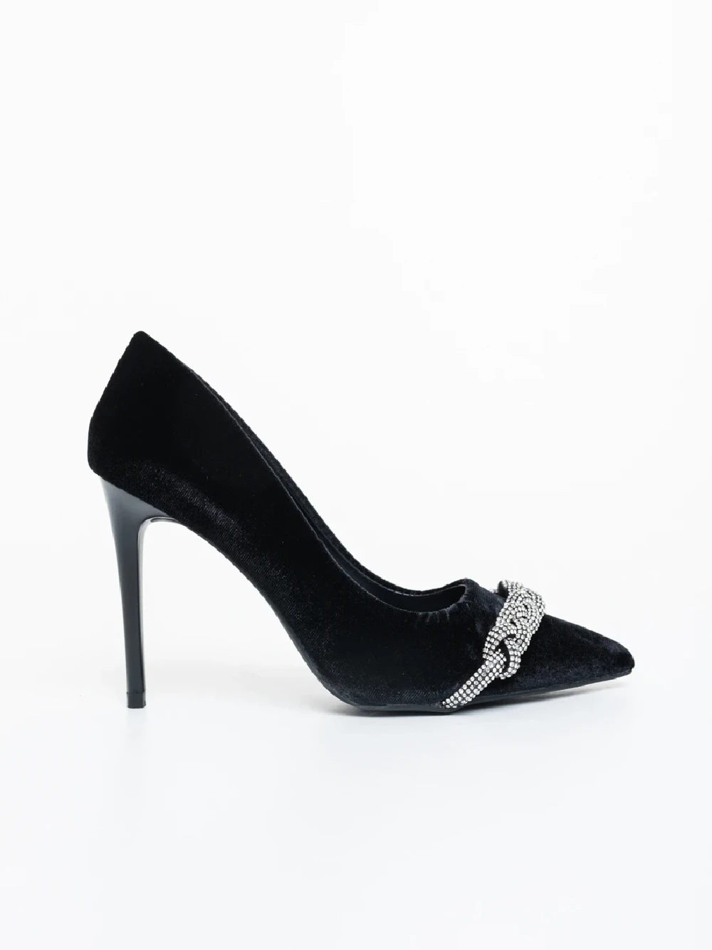 Дамски обувки с ток черни от текстилен материал Floriana Информация за продукта