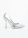 Дамски обувки с ток сребристи от екологична лачена кожа Frodina