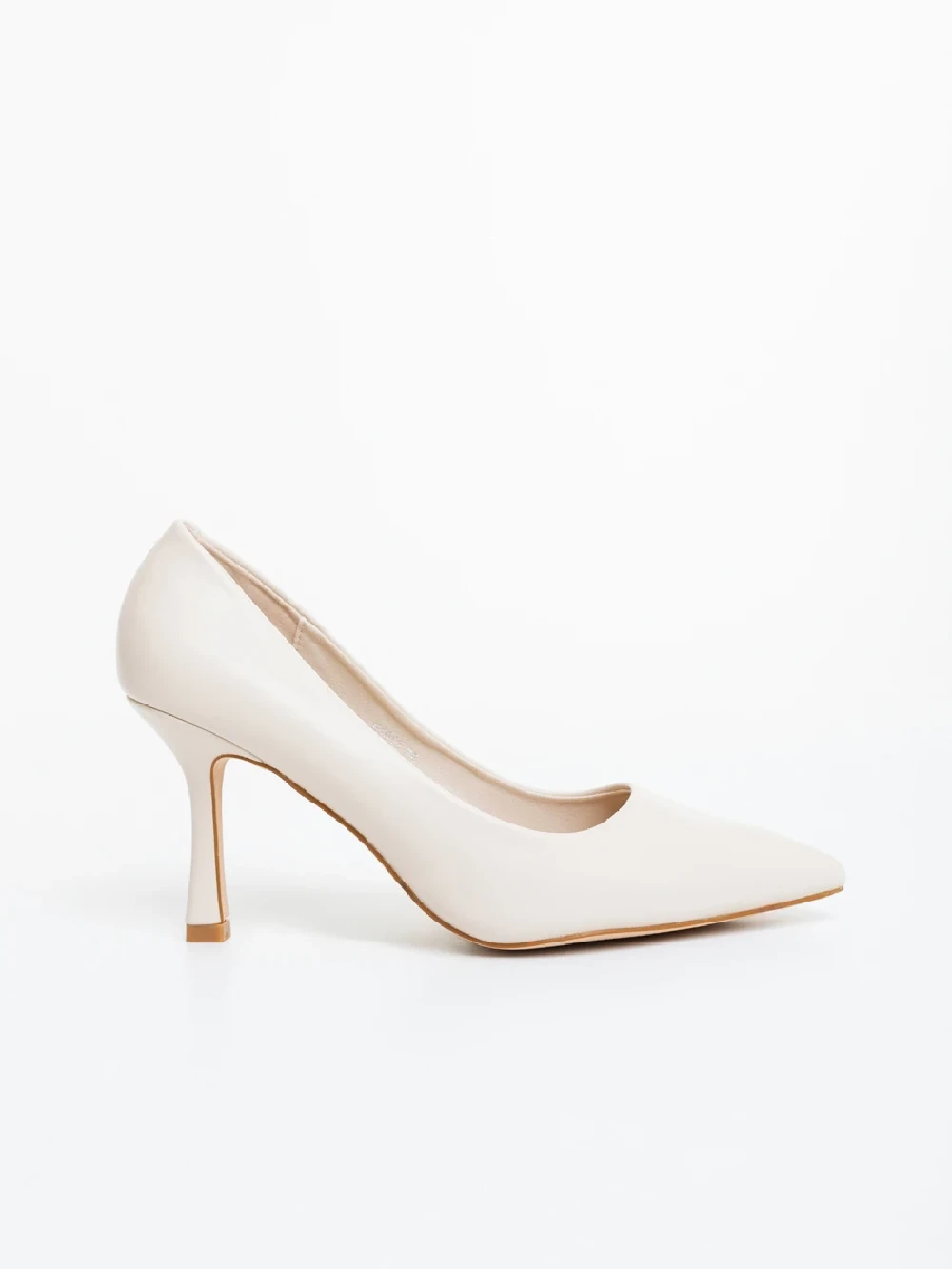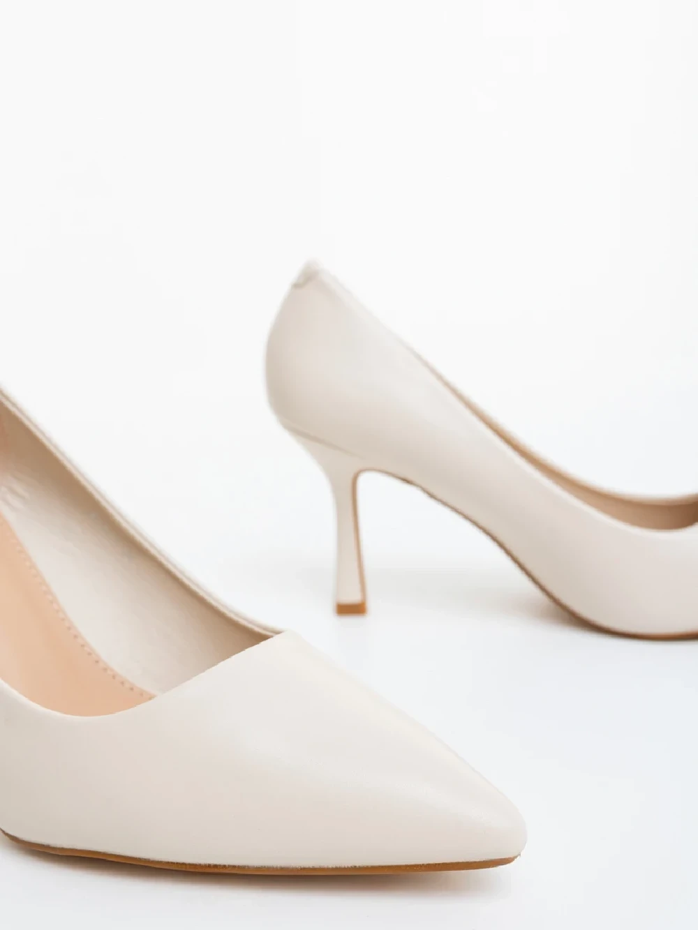 Дамски обувки с ток бежови от екологична кожа Zafrani