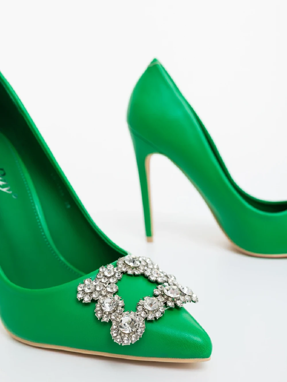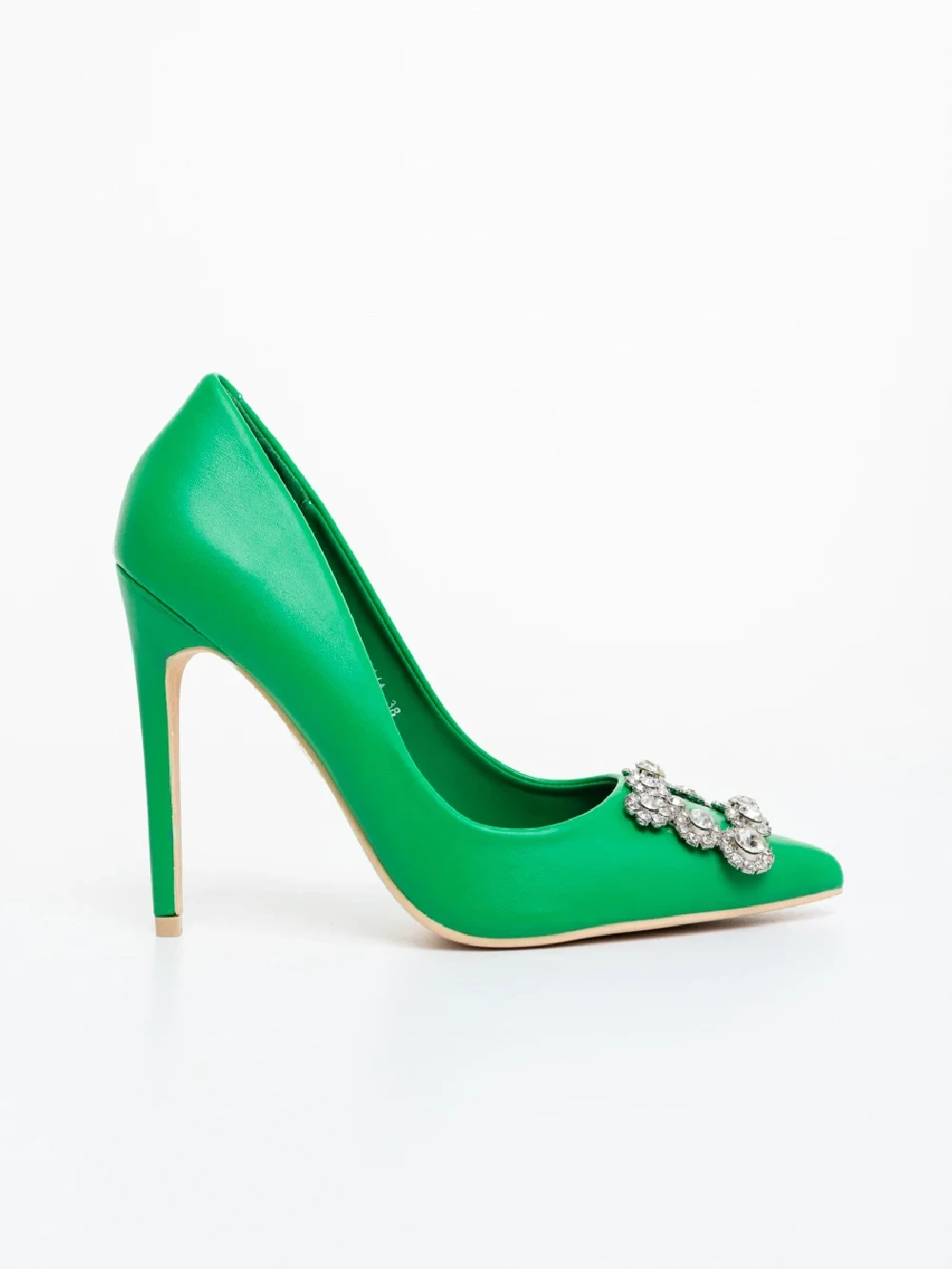 Дамски обувки с ток зелени от екологична кожа Danzia
