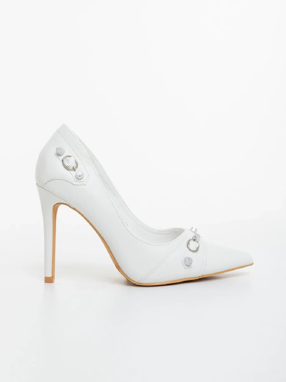 Дамски обувки с ток бели от екологична кожа Vamora