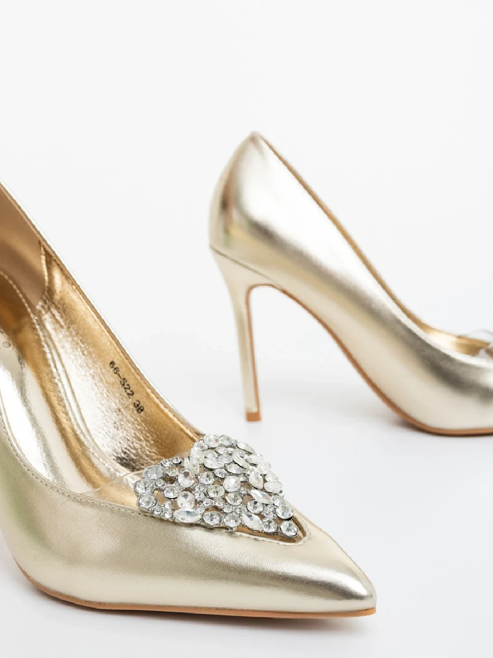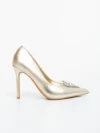 Дамски обувки с ток златисти от екологична лачена кожа Estora Информация за продукта