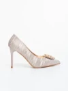 Дамски обувки с ток цвят шампанско от текстилен материал Severa