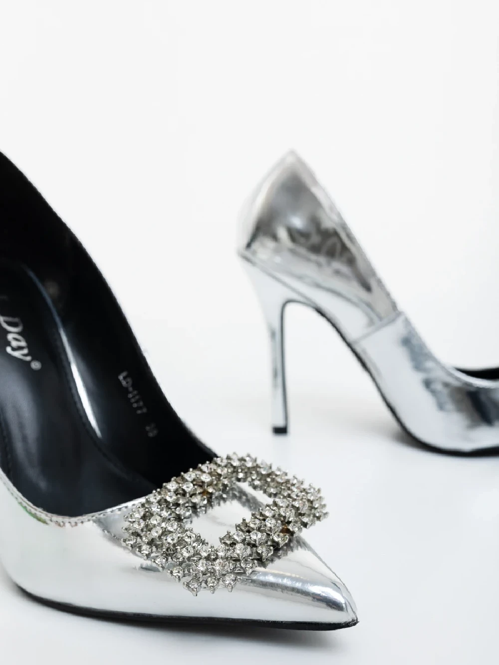 Дамски обувки с ток сребристи от екологична лачена кожа Lusera Информация за продукта