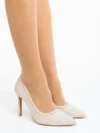 Дамски обувки с ток цвят шампанско от текстилен материал Radica