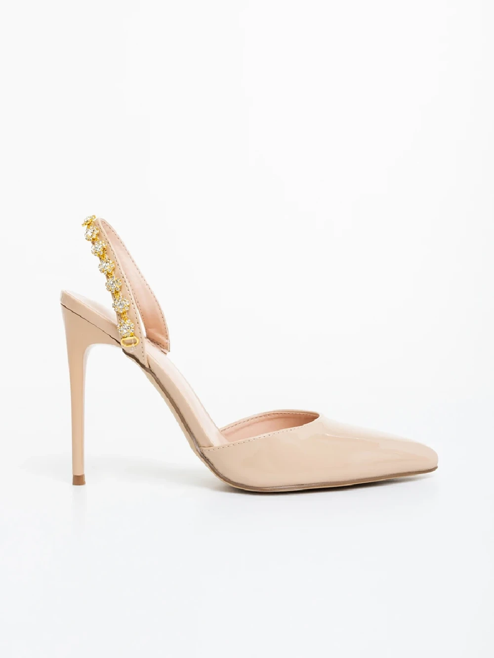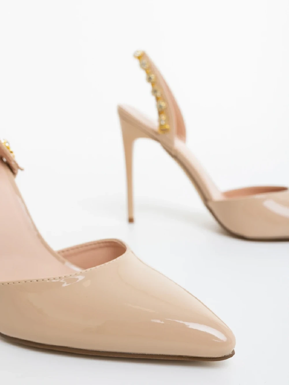 Дамски обувки с ток бежови от екологична лачена кожа Maromi