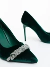 Дамски обувки с ток зелени от текстилен материал Floriana