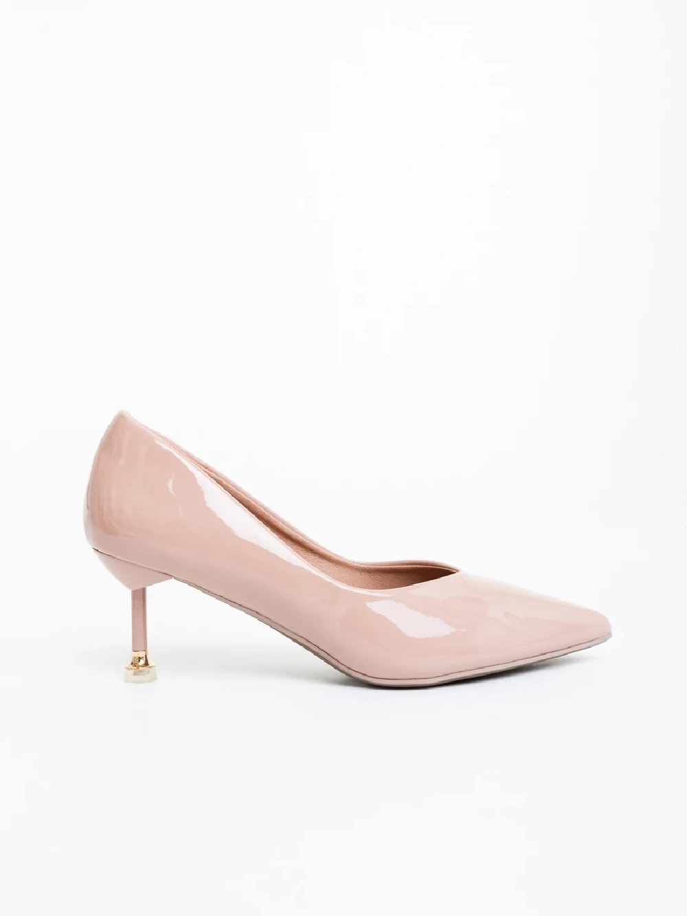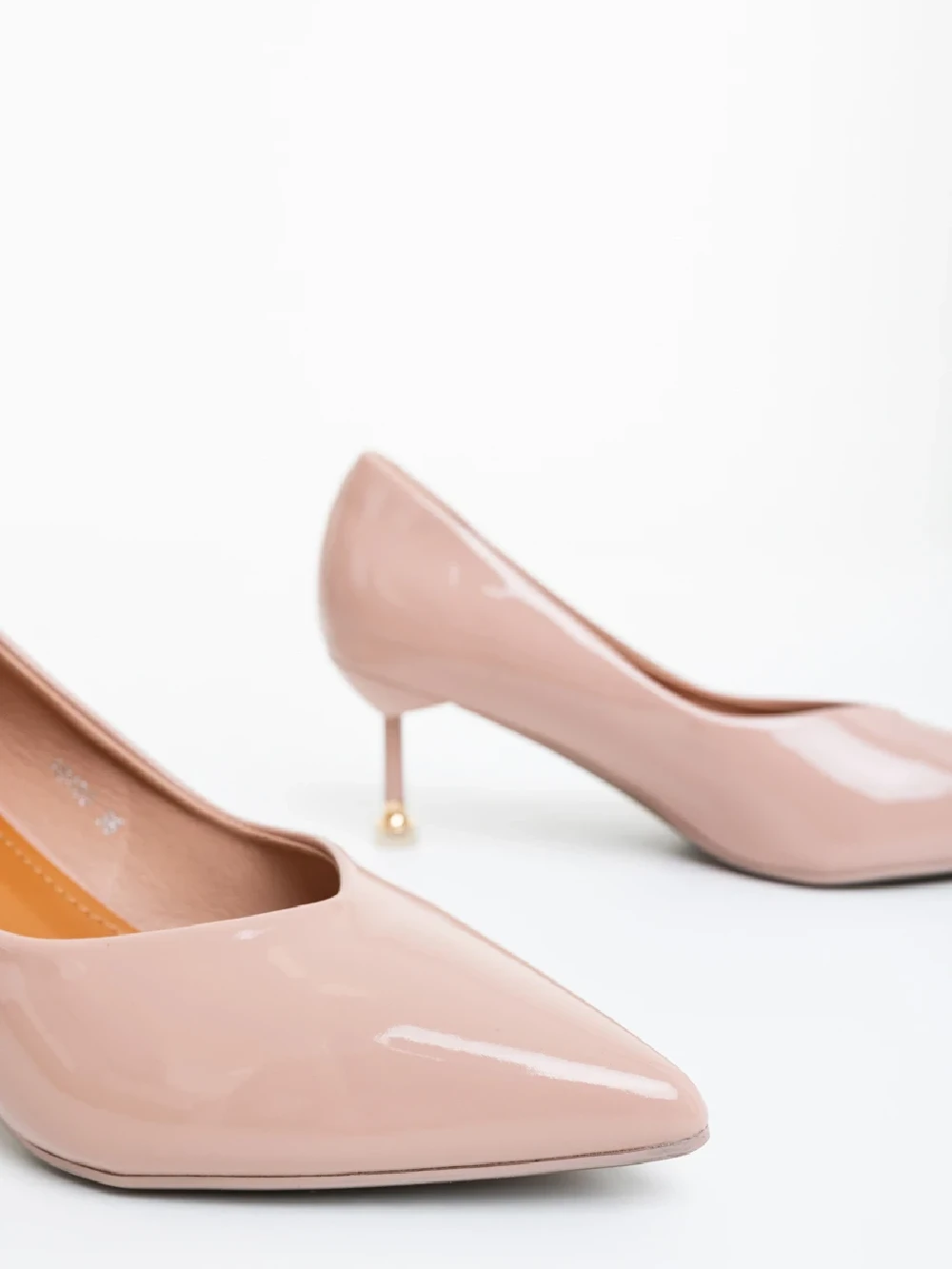 Дамски обувки с ток телесен цвят от екологична лачена кожа Caravela Информация за продукта