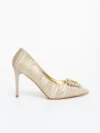 Дамски обувки с ток златисти от текстилен материал Severa