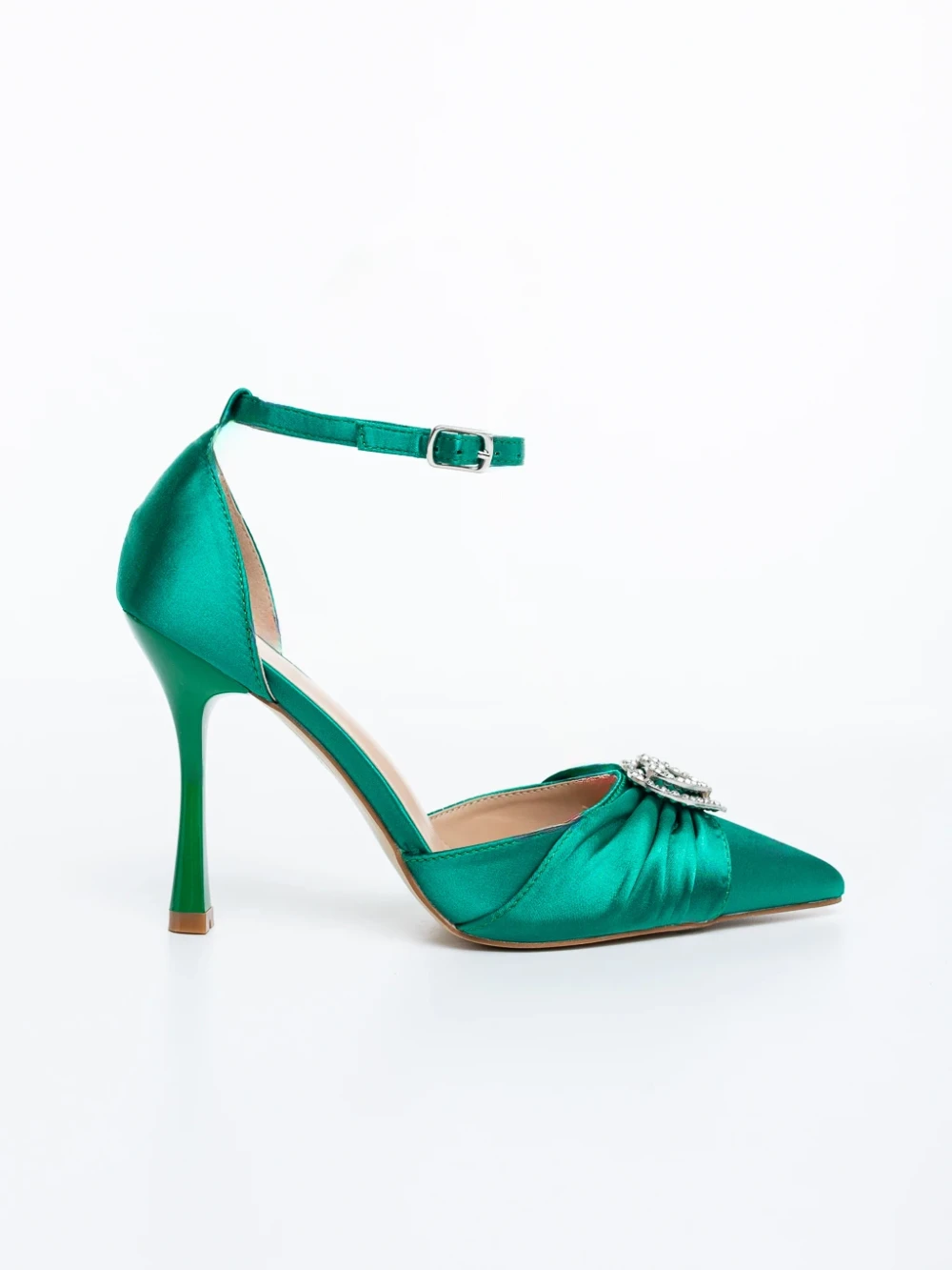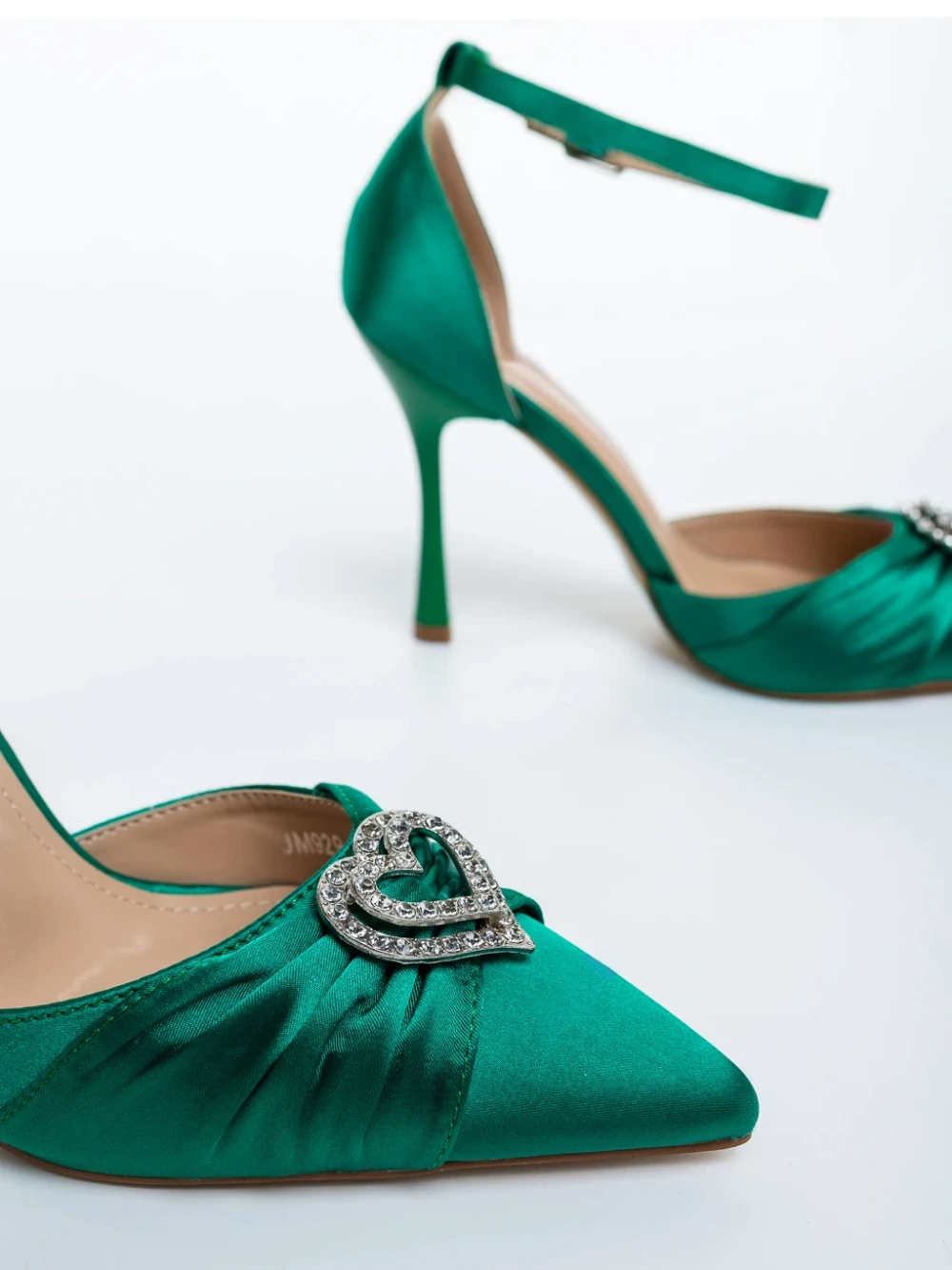 Дамски обувки с ток зелени от текстилен материал Ambria