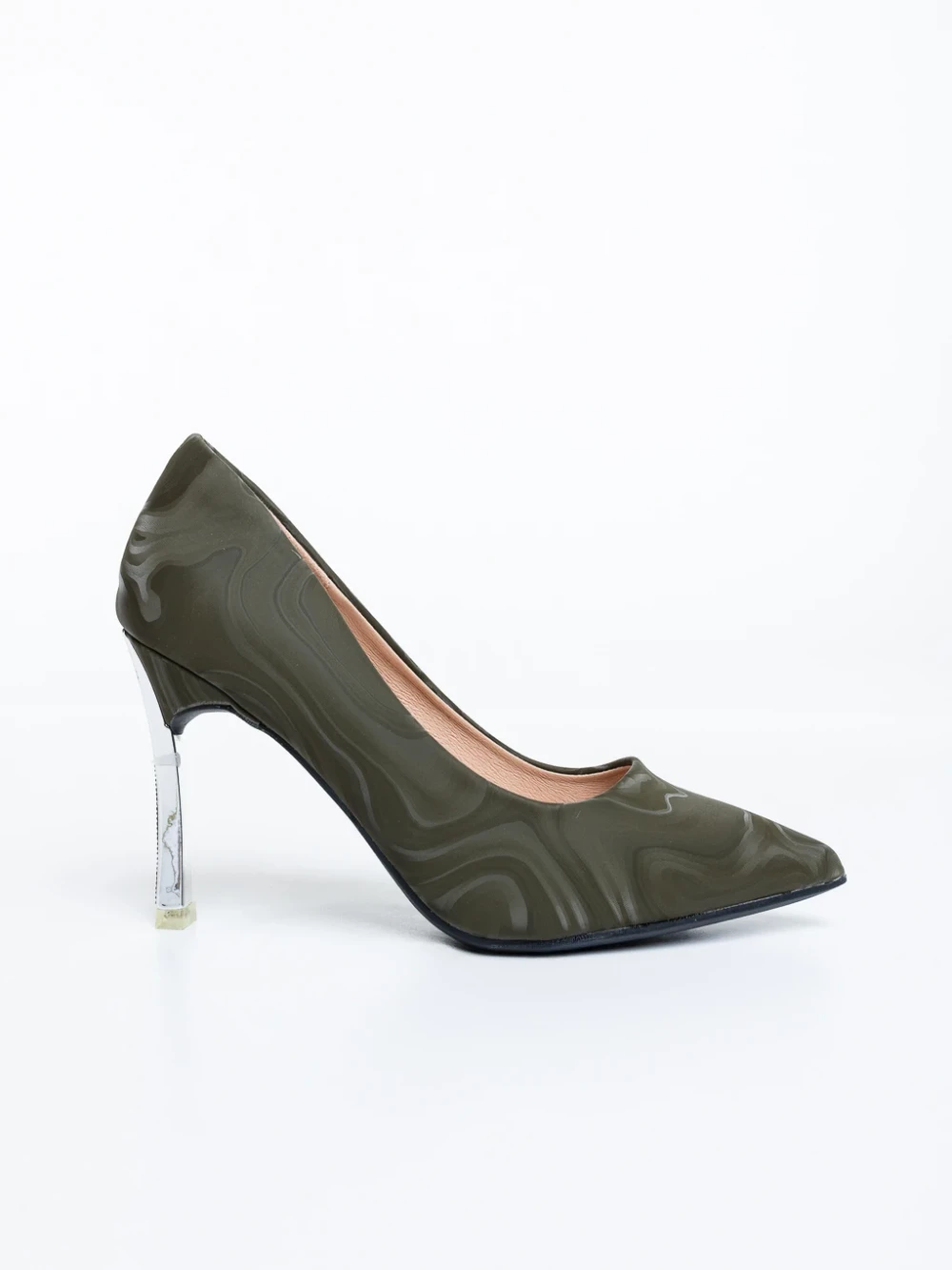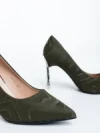 Дамски обувки с ток тъмно зелен от текстилен материал Zuria Информация за продукта