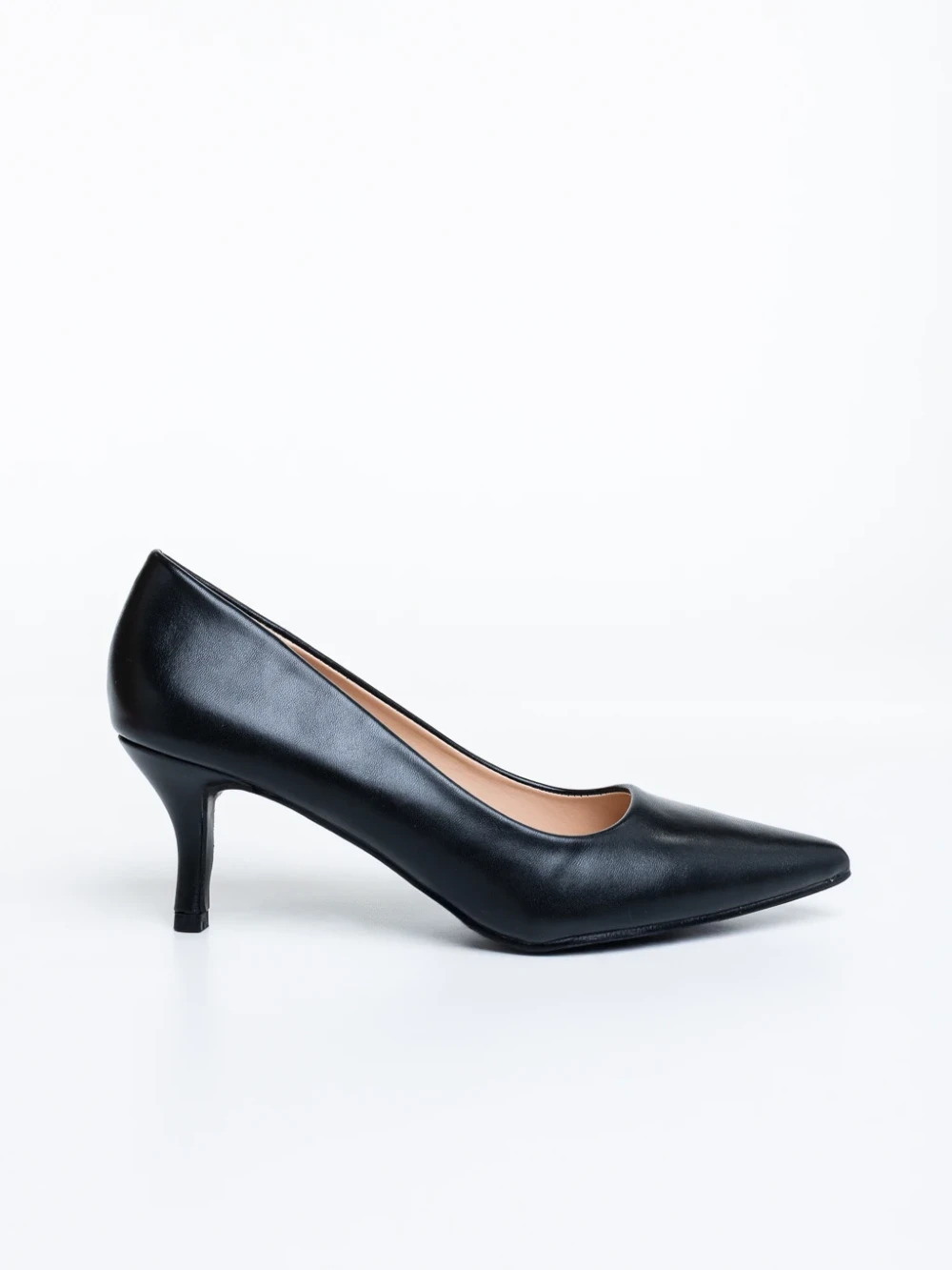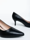 Дамски обувки с ток черни от екологична лачена кожа Maera