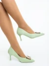 Дамски обувки с ток зелени от текстилен материал Merenda