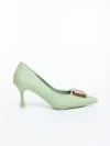 Дамски обувки с ток зелени от текстилен материал Regenda