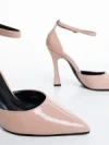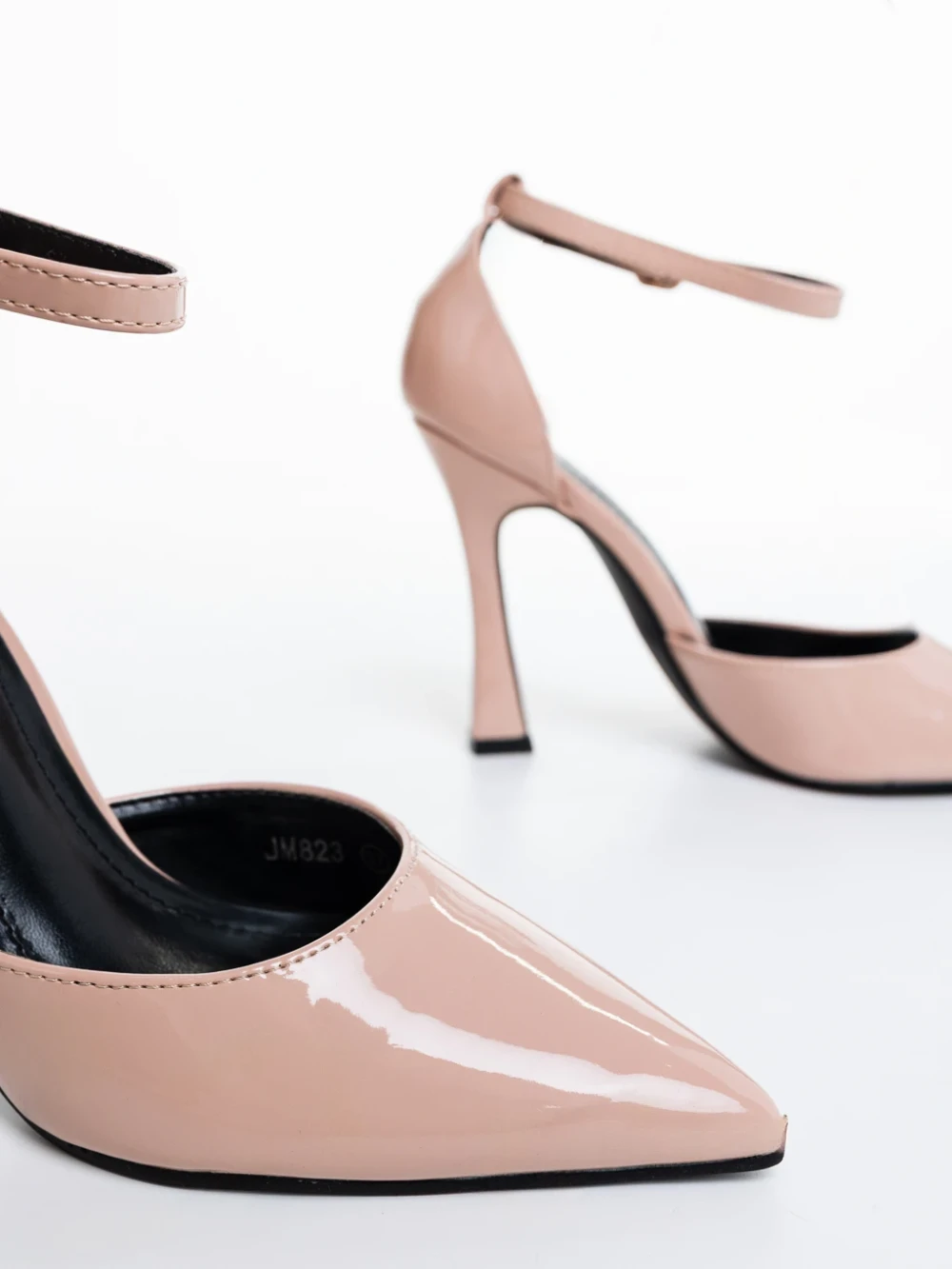 Дамски обувки с ток светло бежови от екологична лачена кожа Lavrona