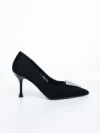 Дамски обувки с ток черни от текстилен материал Atelia